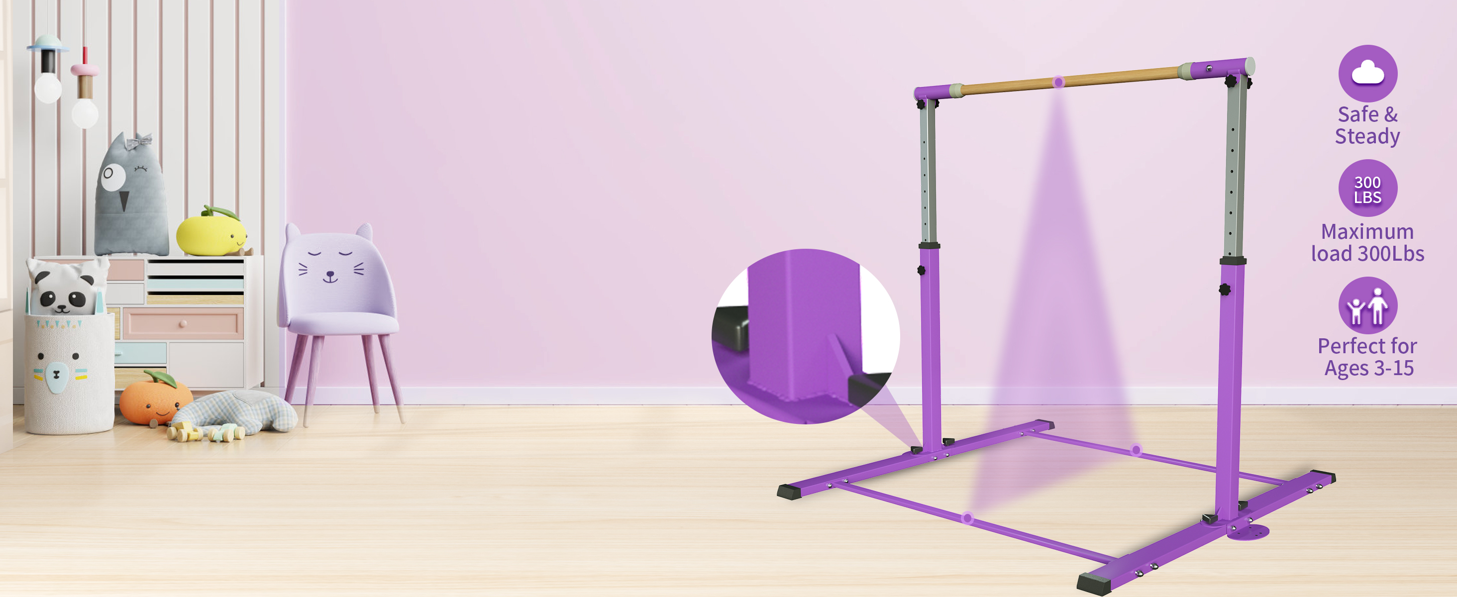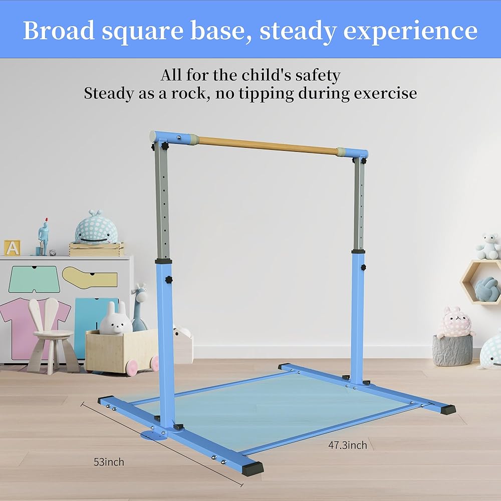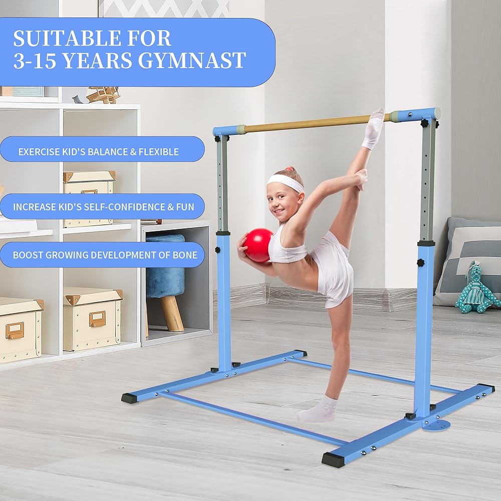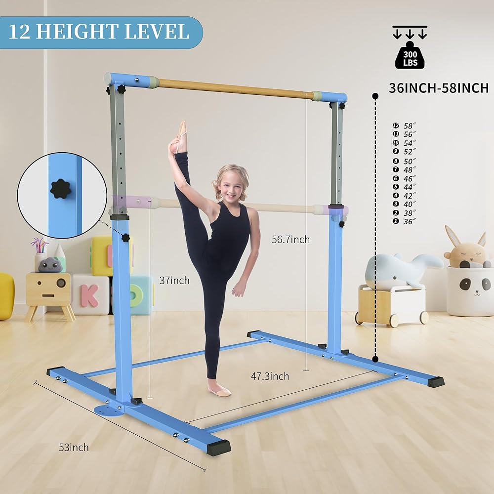 ارتفاع قابل للتعديل: يمكن تعديل ارتفاع قضيب الجمباز بسهولة لأعلى أو لأسفل، من 91.4 سم إلى 139.5 سم مع 11 مستوى، وهو مثالي للاعبي الجمباز الصغار والمستخدمين من أي عمر أو طول حيث يمكن تعديله ليناسب طولهم. ينمو، هيكل القفل القوي يحمي أطفالك من أجل الأمان بنسبة 100%، دع تدريب الجمباز يكون أكثر مثالية!
