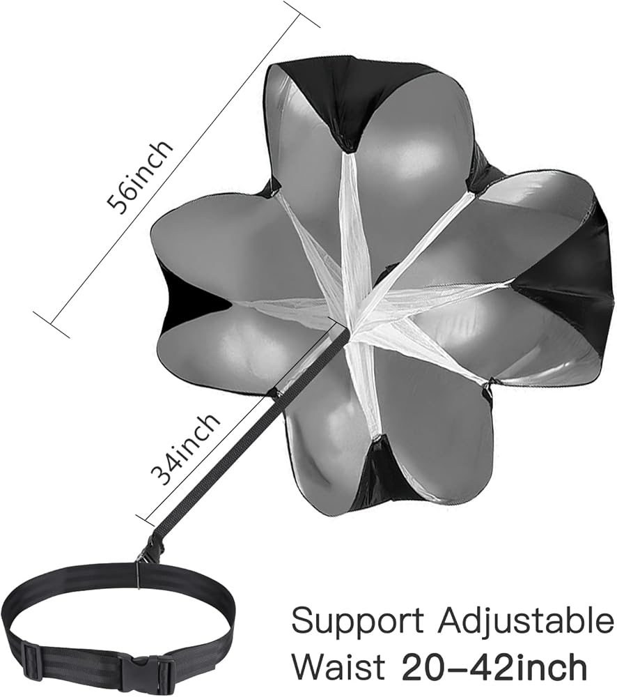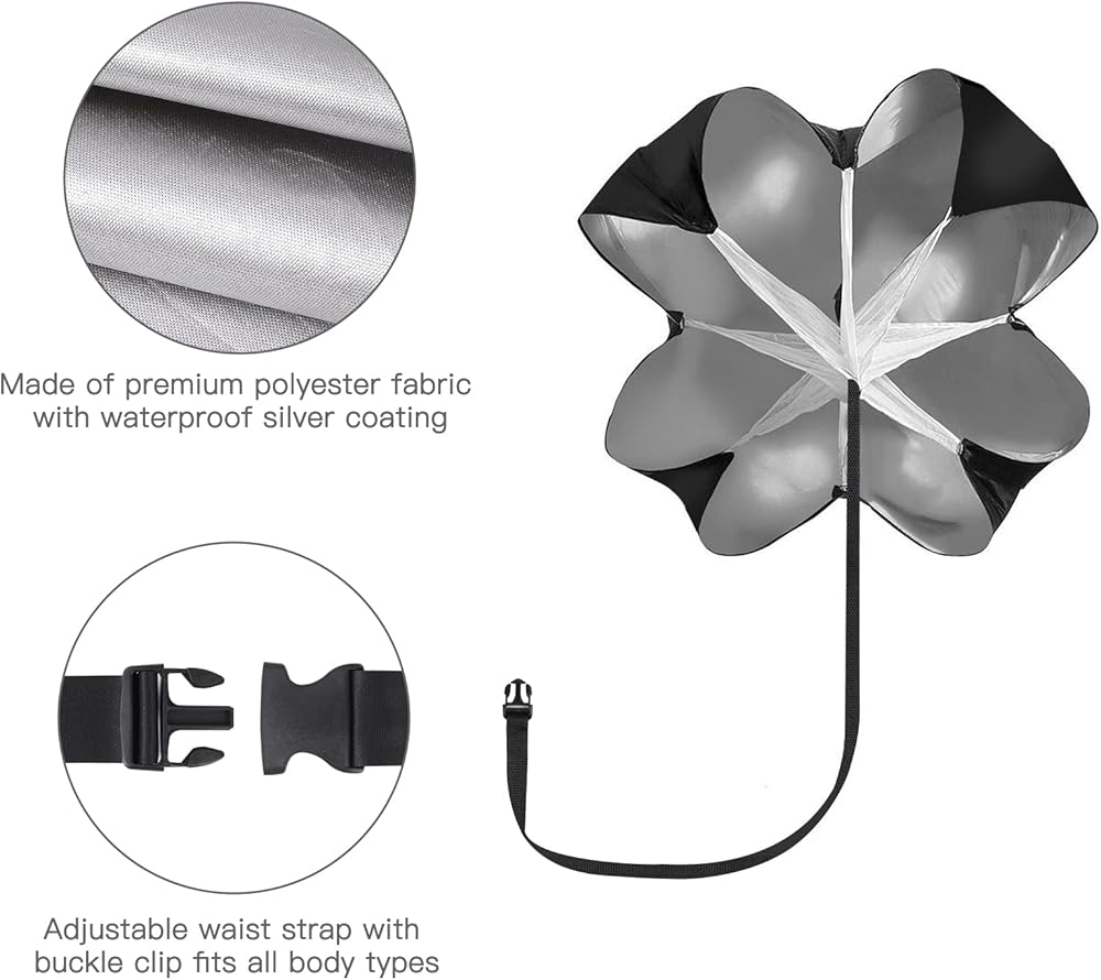 🏃♂️مقاومة قوية - شلال تدريب القوة المتفجرة، القطر: حوالي 56 بوصة / 142.2 سم. يمكن أن توفر المظلة 11-33 رطلاً من المقاومة. يمكنك أيضًا زيادة صعوبة الرياضة عن طريق إضافة 1-2 مظلتين مقاومة، وتحقيق اختراق في السرعة.