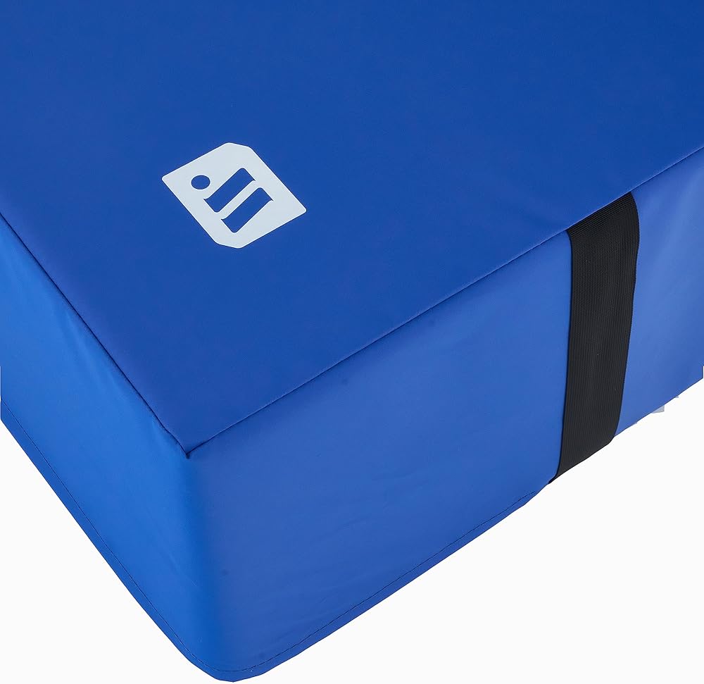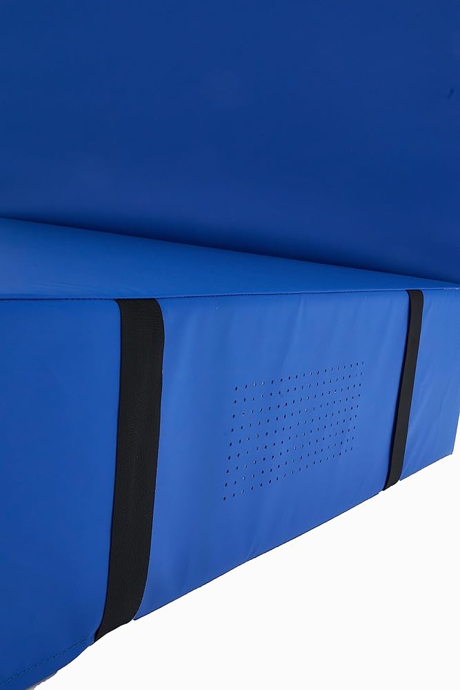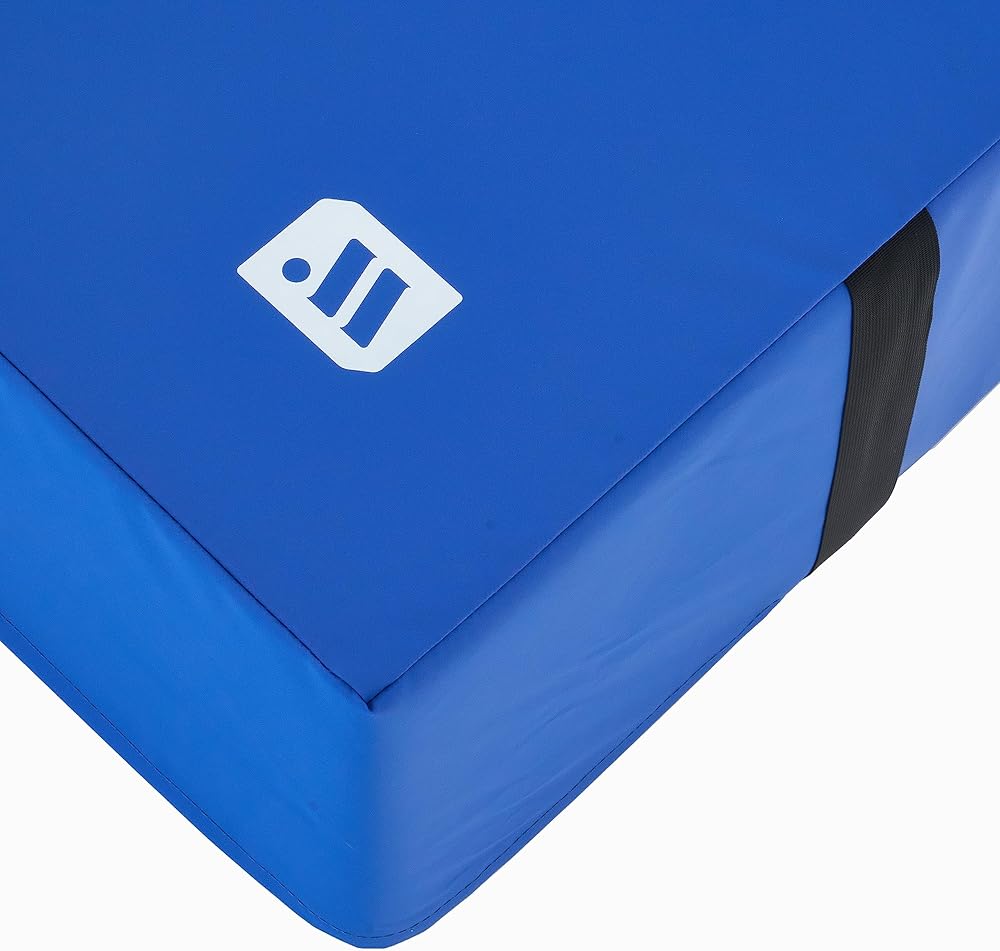Transportable 4'x6' or 4'x8' bi-fold crash pad floor mat comes in 2", 4", 8" or 12" thickness and a sponge-core foam padding with 18 oz. vinyl top and mesh sides. Convenient handles on the sides allow for easy carrying. The portable design fits in cars, closets, home gyms and gym facilities making it accessible for any athlete, personal trainer or fitness enthusiast on-the-go.
