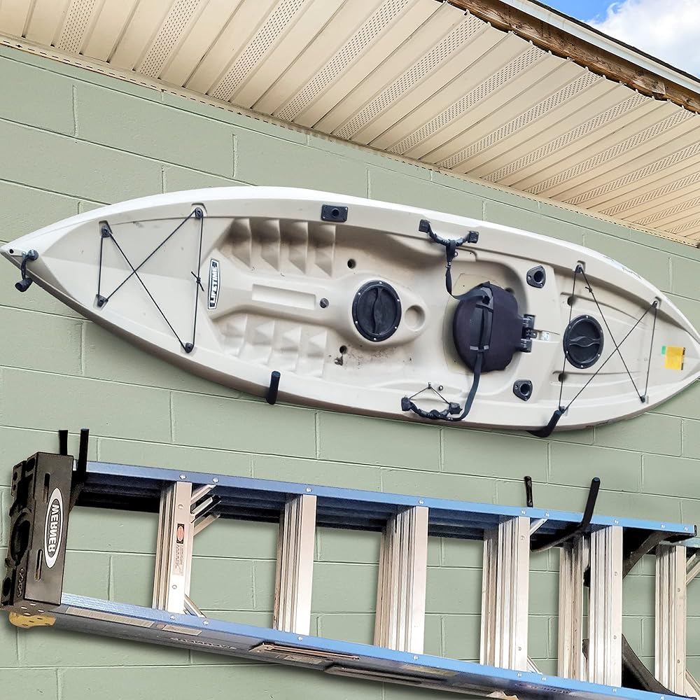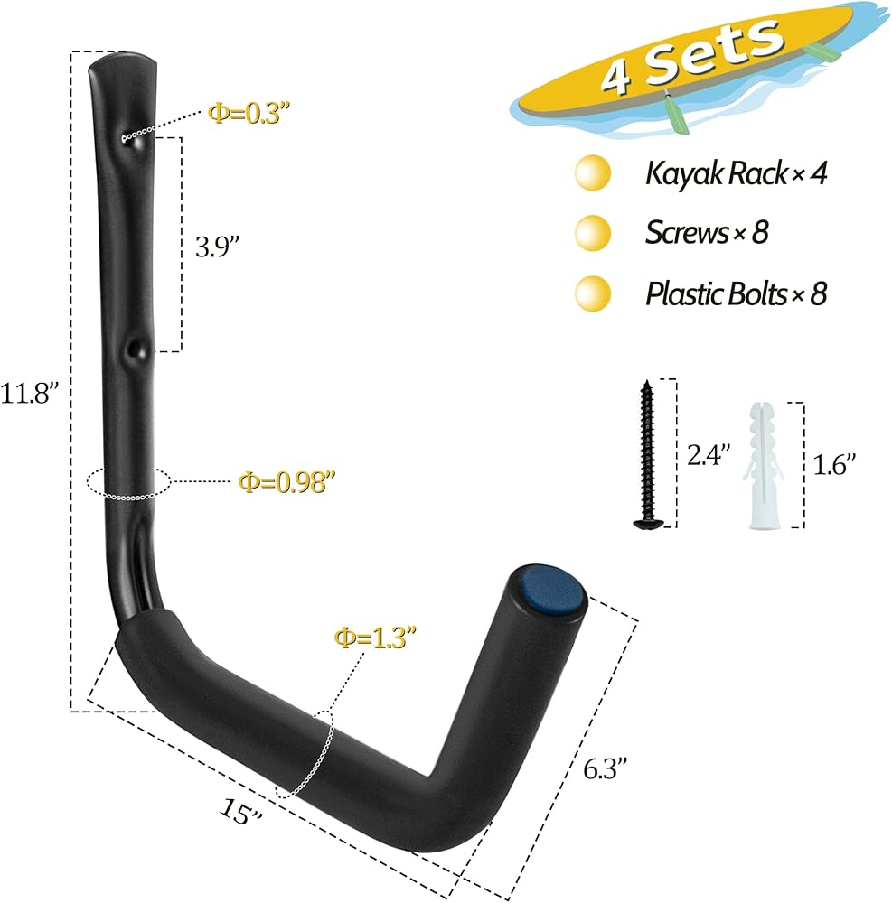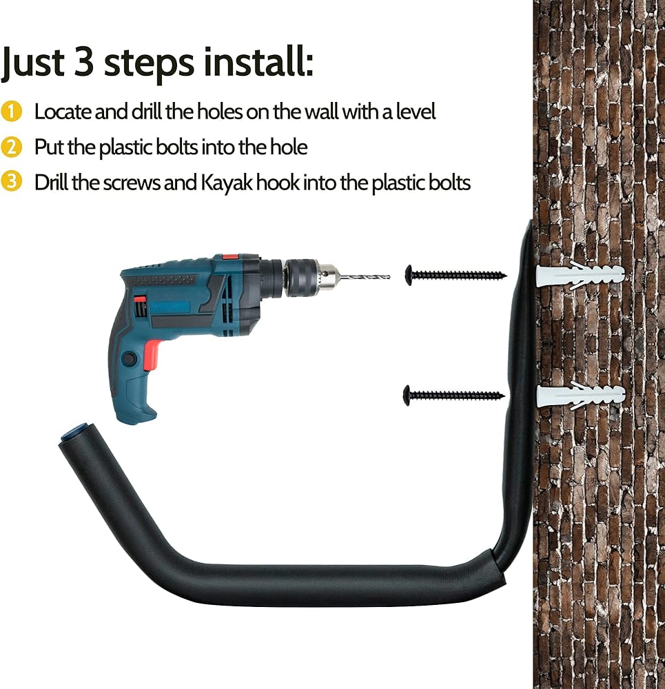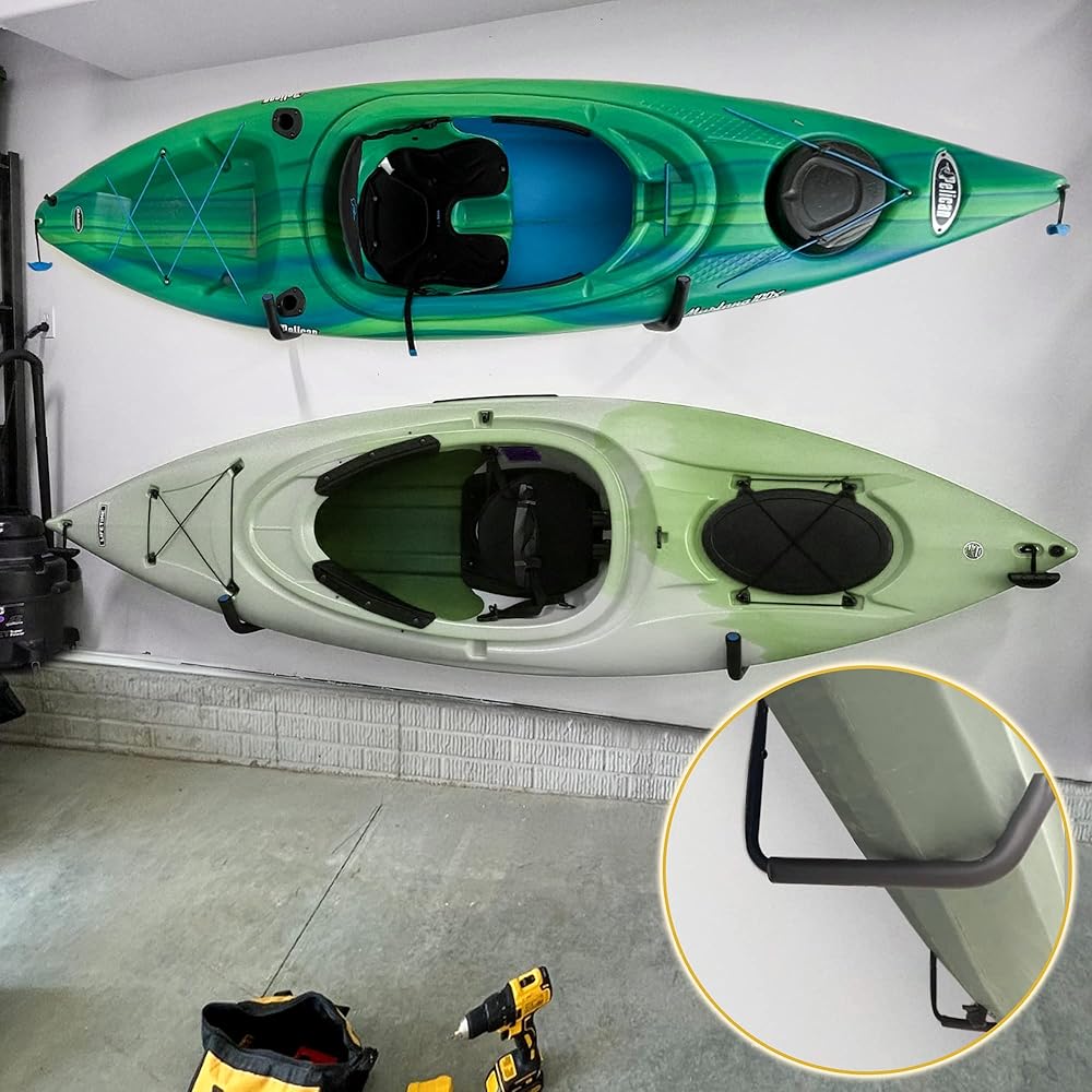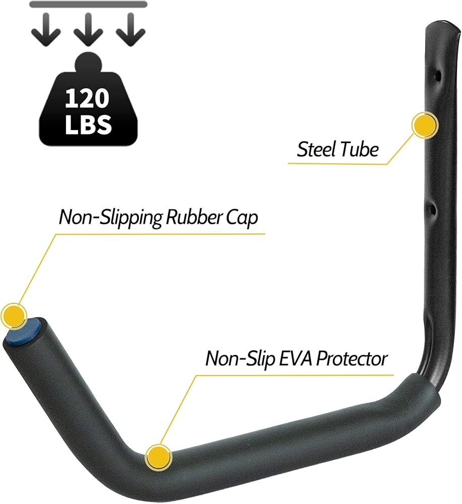 وظائف متعددة: شماعات أدوات الكاياك الكبيرة جدًا رائعة لتنظيم تخزين المرآب مثل لوح ركوب الأمواج والزوارق والكاياك والكراسي المطوية والسلالم والدراجات والأدوات وخراطيم الحديقة والخشب والمعدات الرياضية وغيرها من العناصر الكبيرة. ويمكنك استخدام اثنين منهم كتطابق لتعليق الأشياء الثقيلة