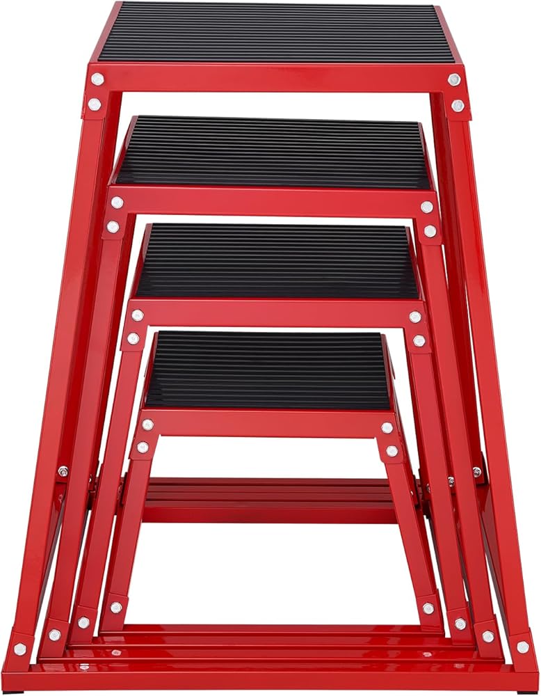 صناديق القفز البليومترية، صندوق رقائق 12/18/24/30 بوصة، منصة وصندوق خفة الحركة للقفز، مجموعة صندوق تصعيد لتمارين اللياقة البدنية مضادة للانزلاق لتدريب صالة الألعاب الرياضية المنزلية، وتدريبات القوة المرطبة، باللون الأحمر