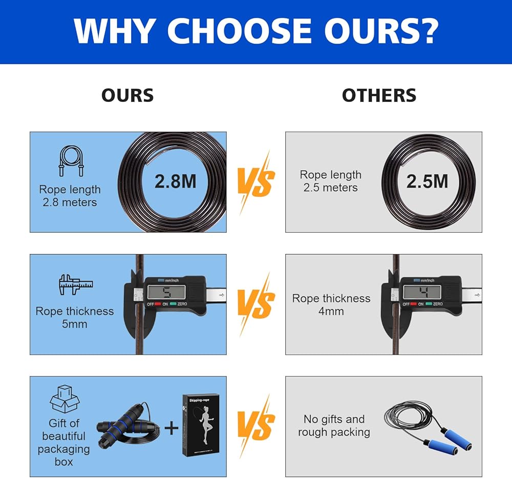【مقابض إسفنجية مريحة】 المقابض المريحة مصممة بشكل جيد من أجل سلامتك وراحتك. مقابض حبل القفز مغطاة بإسفنجة ناعمة، مما يجعل المقابض مريحة وقابلة للتنفس عند الإمساك بها. كما أن ميزات عدم الانزلاق والرطوبة تحافظ على جفاف راحة يدك، مما يجعل كل تمرين مريحًا وآمنًا!