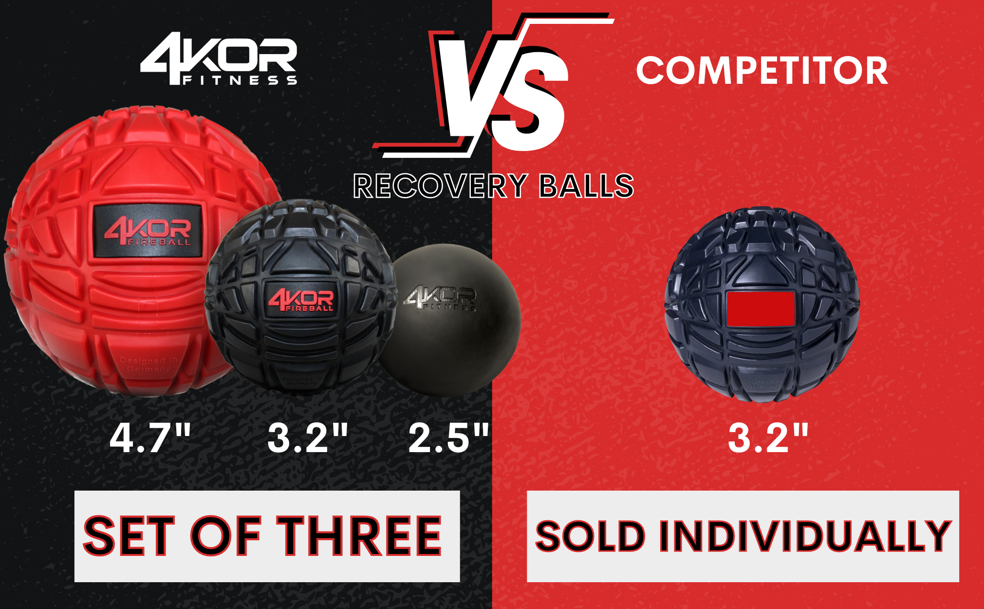 مجموعة كرات التدليك 4KOR - كرة نقطة الزناد - تخفيف العضلات لآلام الظهر والرقبة والكتف والقدم - كرات تدليك اللياقة البدنية - العلاج الطبيعي لإطلاق الأنسجة العميقة الليفية العضلية - أدوات الكرة الدوارة