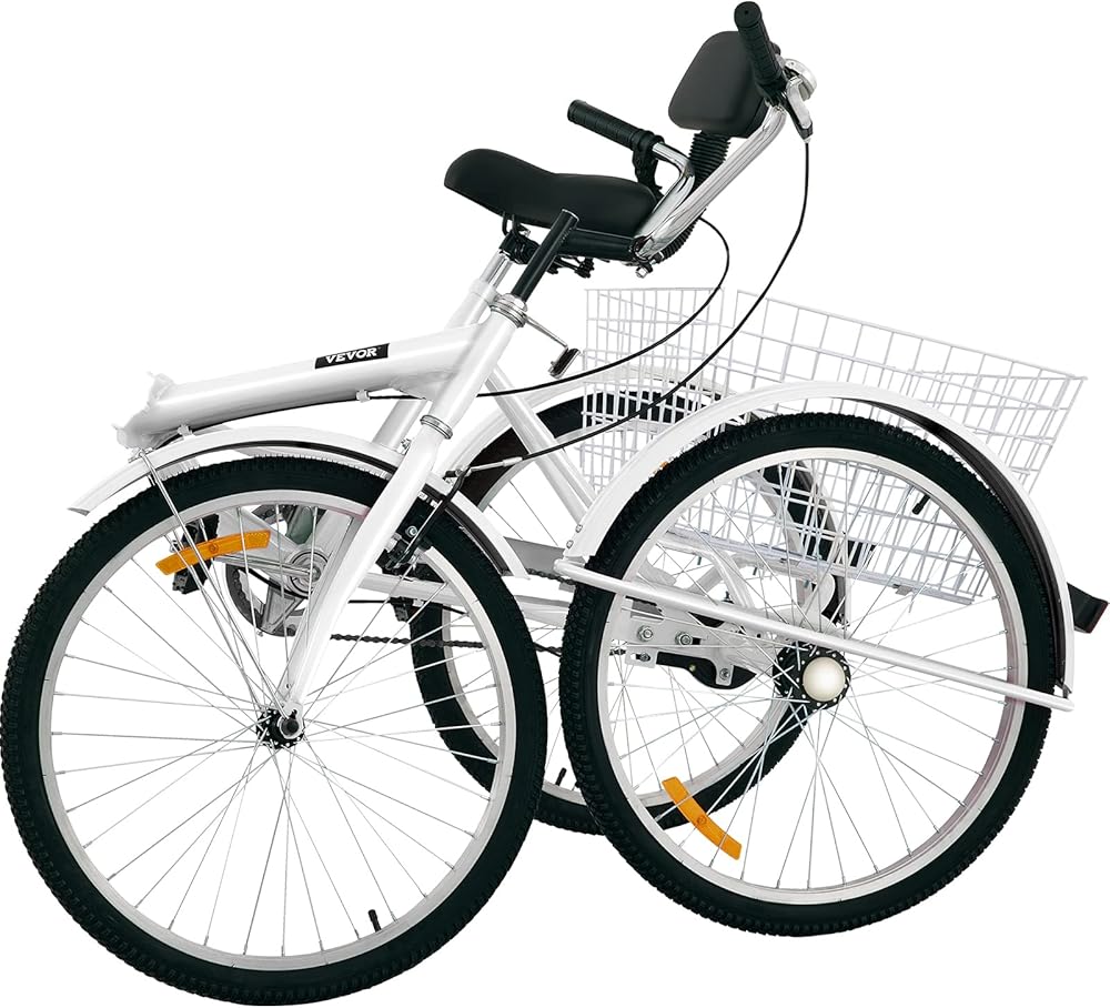 This 3 wheeled bikes for adults with one large rear basket can accommodate lots of vegetables, fruits, etc. Perfect for a picnic, shopping, recreation.