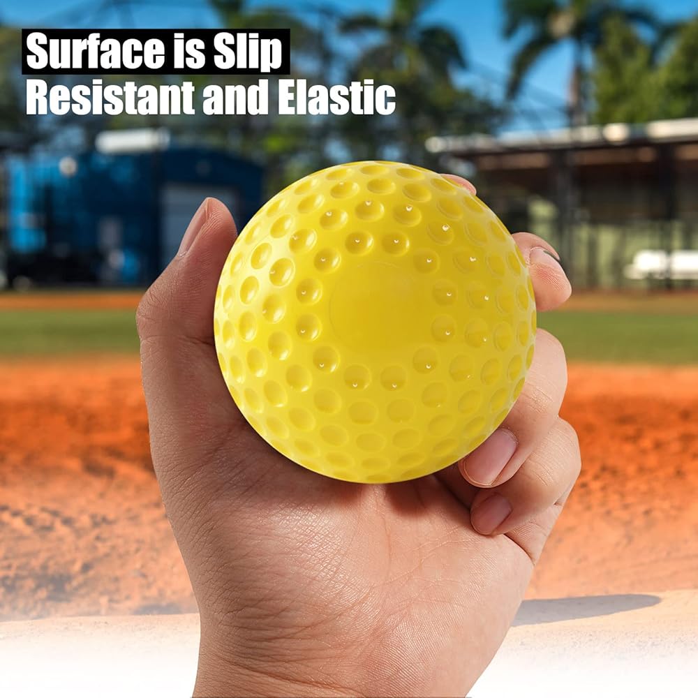 EASY TO CATCH:The balls are easy to hit with the bat, and they get decent distance which helps with the confidence of the players. We have used the tee to hit off and pitching.These 12inch dimpled softballs are ideal for batting practice or pitching machines.