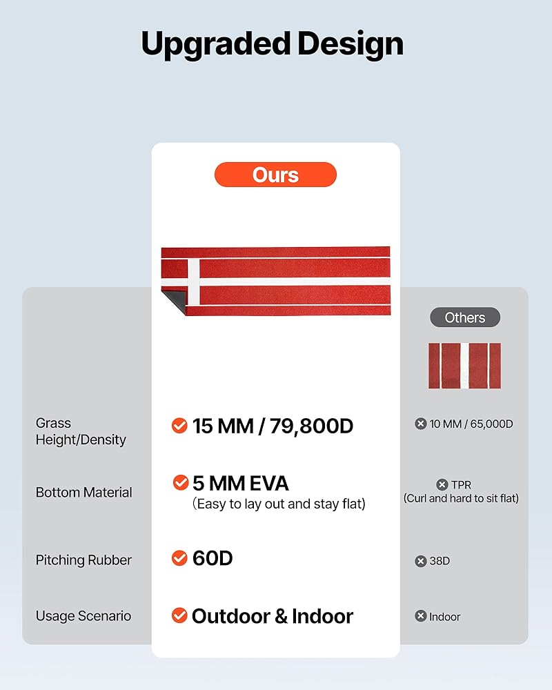 سهلة التنظيف والتخزين: مصنوعة من عشب صناعي من مادة البولي بروبيلين عالية الجودة وإسفنج EVA، تقاوم كومة أباريق البيسبول هذه التآكل والتمزق في كل من المنطقة الخضراء والخطوط البيضاء المدمجة. كما أنه سهل التنظيف والصيانة. علاوة على ذلك، فإن بنيتها خفيفة الوزن تجعل من السهل طيها، مما يسهل التخزين والنقل المريح.