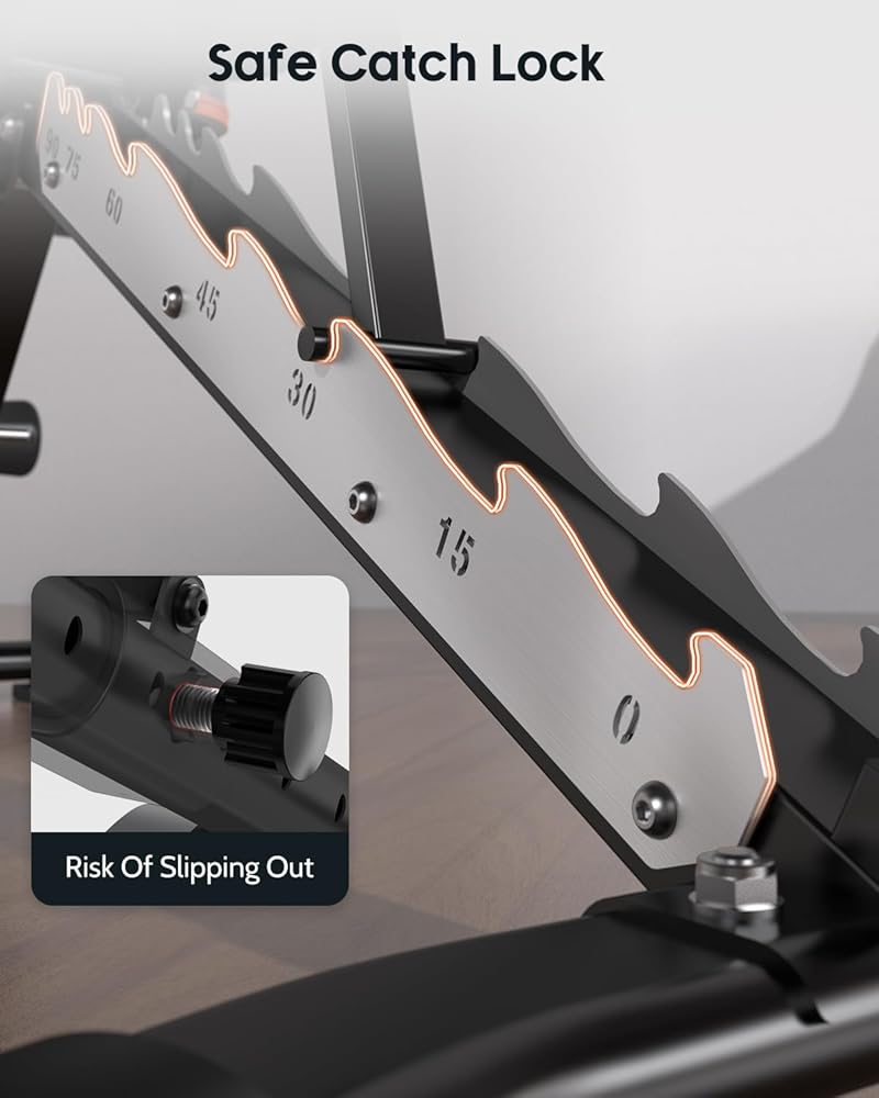 سعة حقيقية تبلغ 660 رطلًا لتحسين الأمان: اشعر بتدريبك الصلب مع الهيكل الفولاذي والمثلث الاحترافي. تم اختبار الحمل بشكل احترافي، ويتميز المقعد بوزن مذهل يبلغ 660 رطلاً كحد أقصى ليجعلك آمنًا ومركزًا أثناء الرفع.