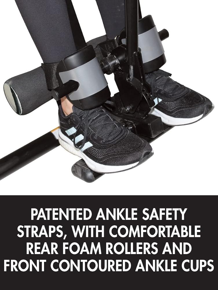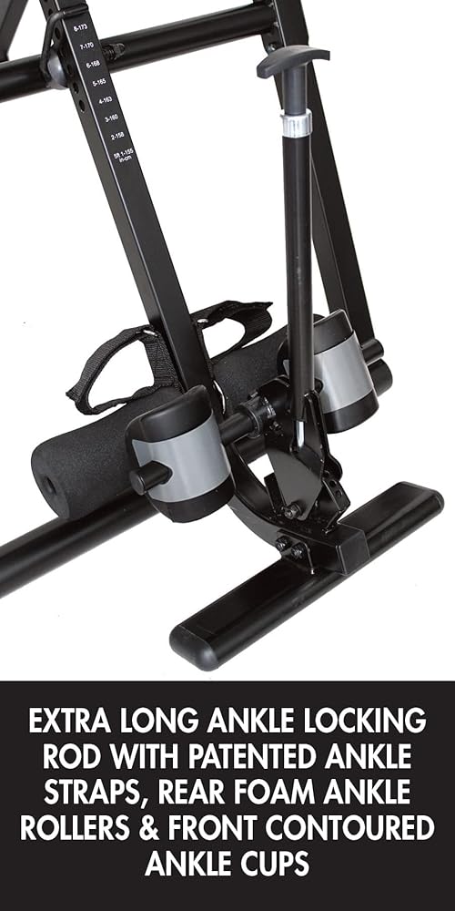 • PATENTED Sur-lock easy in/out ankle support system with oversized high density form ankle rollers, padded ankle cuffs and patented ankle safety straps to ensure maximum safety while inverting upside down