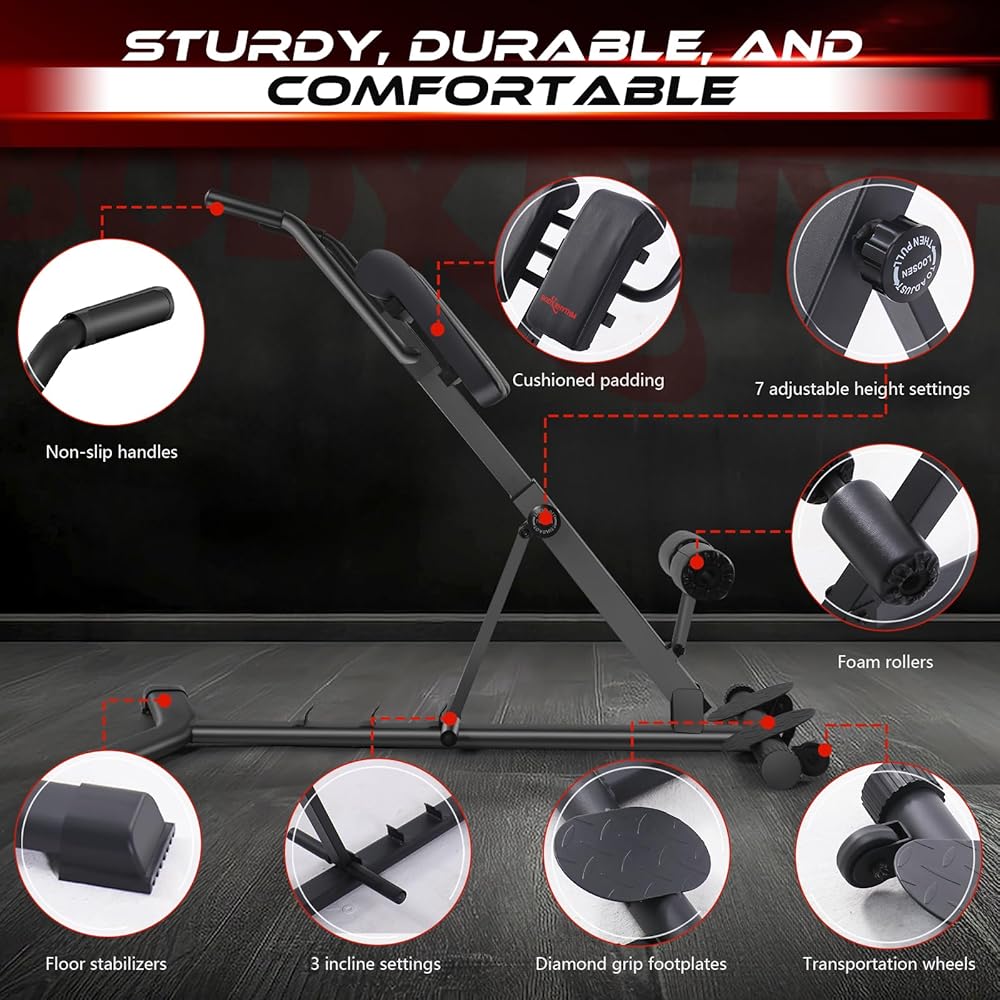 【Space-Saving Design】Enjoy easy storage and assembly with our foldable design, seamlessly integrating this Hyper Extension Roman Chair into your home gym. Create a clutter-free and efficient workout space with convenience.