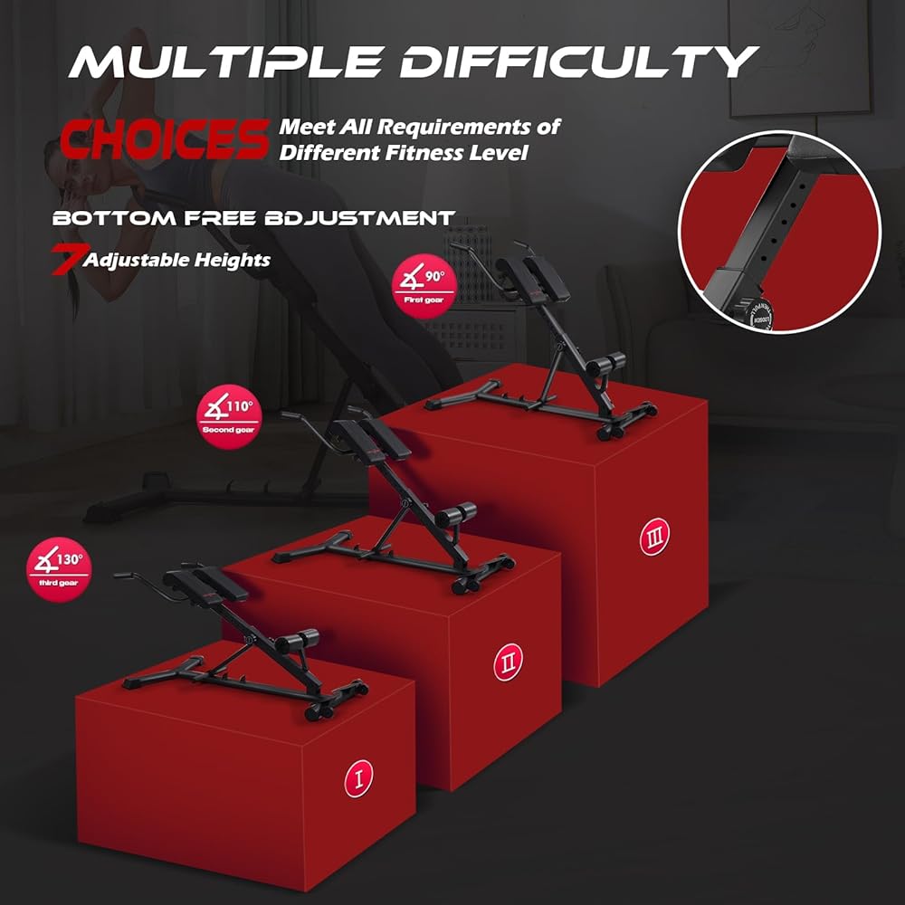【Multifunctional Workout Chair】With such simple back hyperextension bench, you can exercise the most major muscle groups, shape your abs, back, chest, glutes, hamstrings, and core. You can perform hyperextension, side bend, sit-ups, reverse crunch, and more.