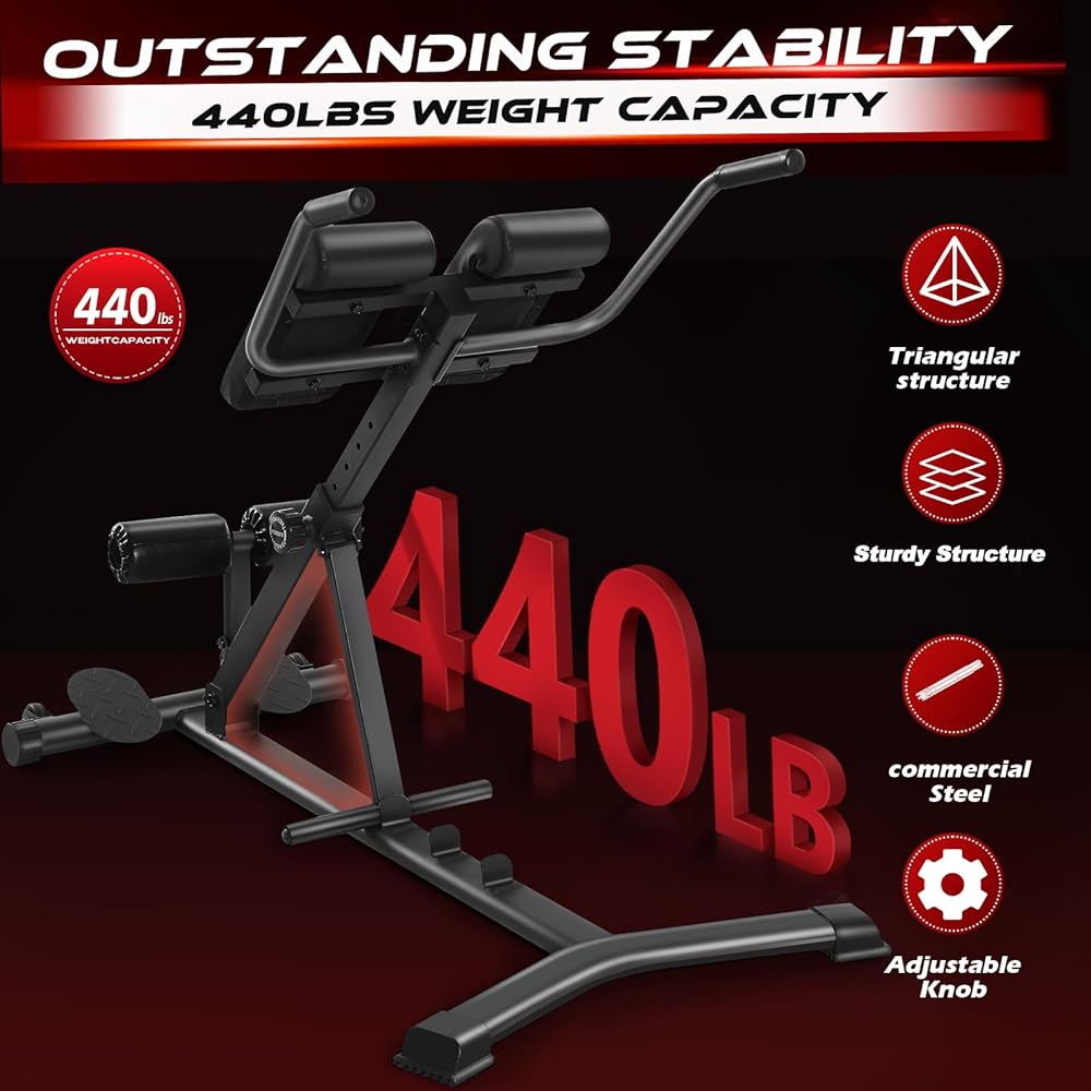 【Durable & Sturdy Construction】The Foldable Roman Chair is built with high-quality materials and construction. It is designed to withstand the rigors of your workout, providing you with a durable and reliable workout partner for years to come. The max weight capacity is 440 LBS.