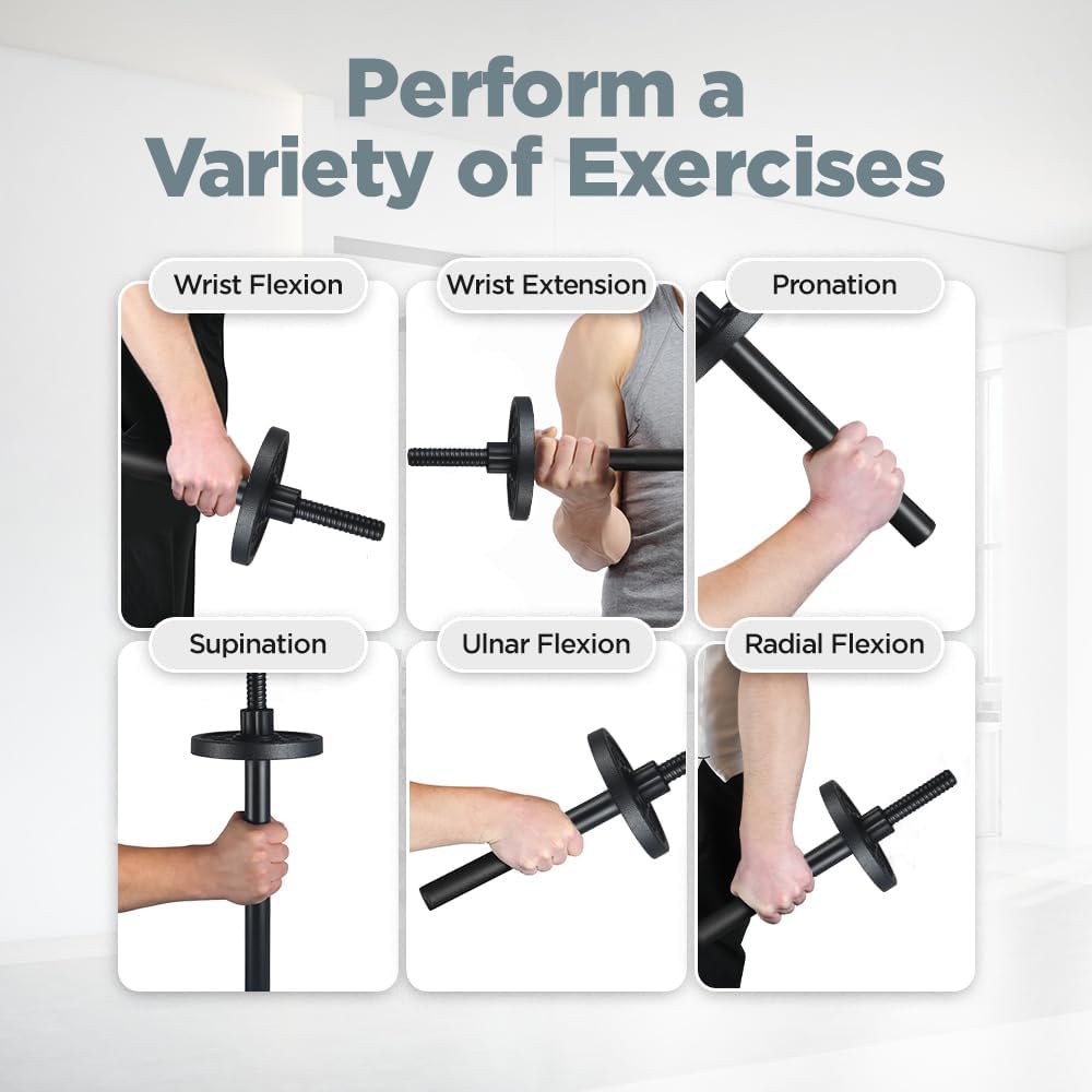 تدريبات متعددة الوظائف: انخرط في تدريبات قوة المعصم والقلب وكامل الجسم من خلال أداء ثني/تمديد المعصم، والكب/الاستلقاء، والثني الزندي/الشعاعي، والصف المنحني، والرفعة الميتة الرومانية، ولف المعصم، وتنظيف القرفصاء، وتمرين الضغط على الذراع. معدات تجريب الذراع المعدات.