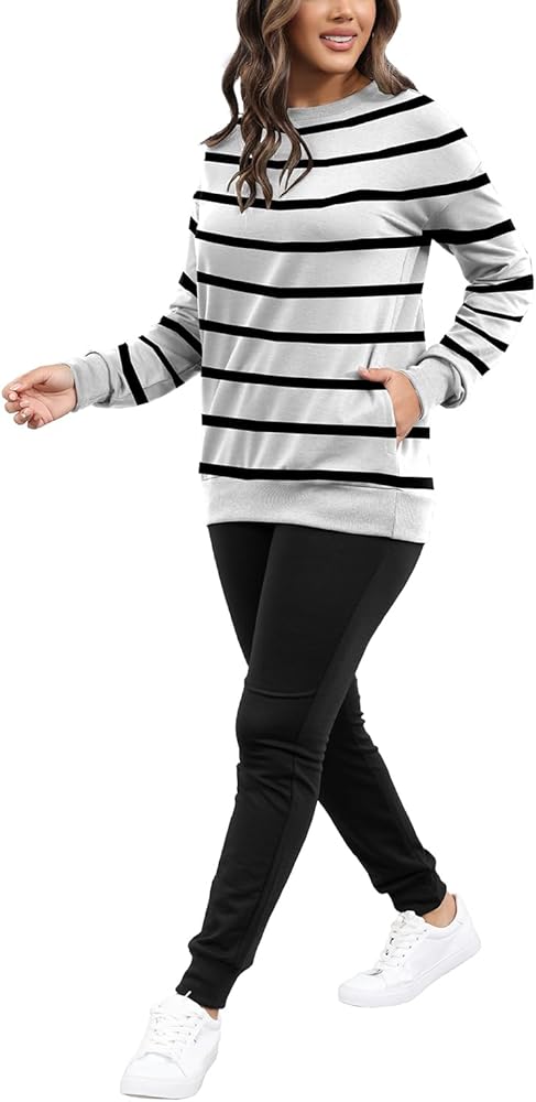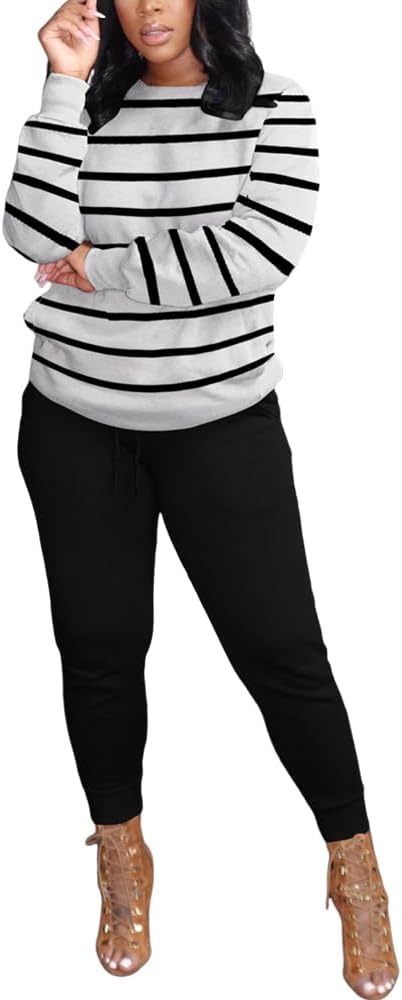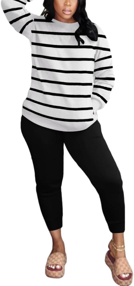 تصميم كلاسيكي: أكمام طويلة، رقبة دائرية، أساور مضلعة عند الحاشية والأكمام والكاحلين، كل من الجزء العلوي الفضفاض والسراويل التنحيف لها جيوب مريحة، أربطة قابلة للتعديل للخصر، كل التفاصيل تعزز من راحتك، مجموعة السراويل الانسيابية ذات الأكمام الطويلة المكونة من قطعتين هو بلا شك الخيار الأفضل لخزانة ملابسك في الخريف والشتاء