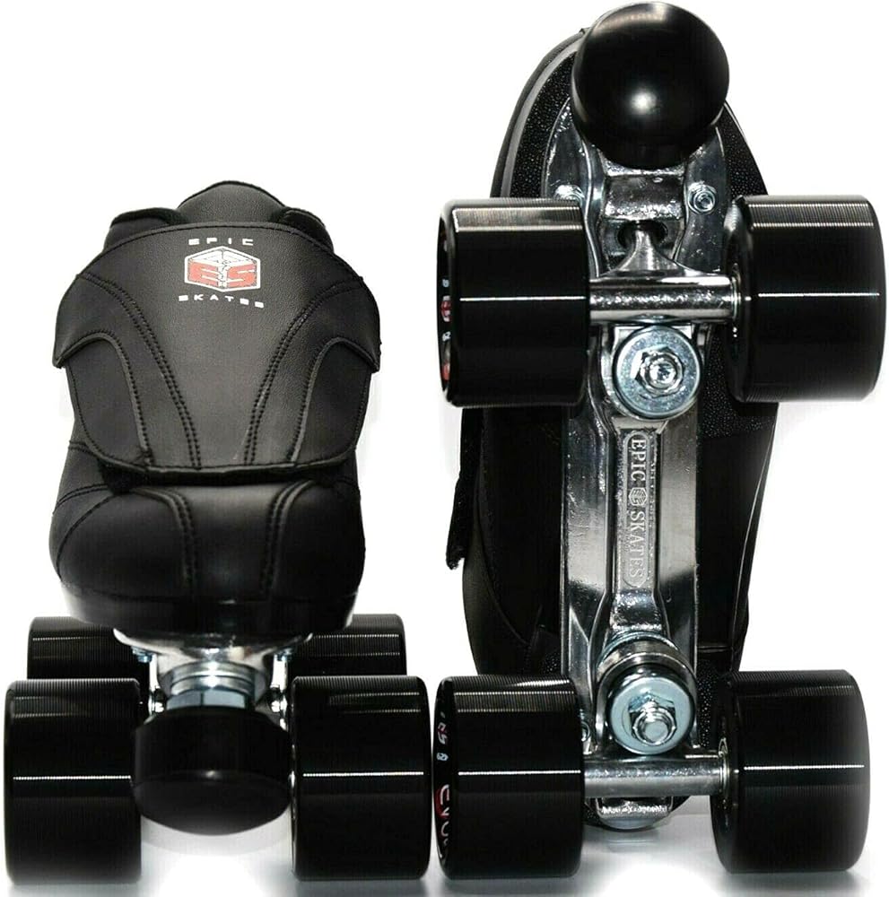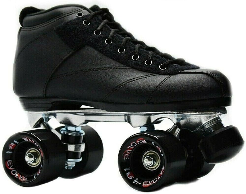 The Evolution from Epic Skates is a break from the norm in the roller skating industry! Produced with high quality synthetic leather outers, paired with a padded liner, Epic Skates took no shortcuts when it comes to comfort! What really sets the Evolution skate apart form the competition is the use of an ergonomically shaped last that allows for the toes to lay flat rather than being crowded at the end. Epic Skates has also utilized a ground breaking aircraft grade, double action, aluminum plate that incorporates PU casted cushions for increased maneuverability, and overall product longevity. The Epic Evolve 62mm x 42mm speed wheels come with factory pre-spun ABEC-7 precision bearings. These skates will come with high grade rubber toe stops as well as Epic toe plugs for jam skating! Excellent skates for Beginner and Advanced skaters alike. The new Epic Evolution Speed Skate is perfect for the casual roller rink session skater all the way to the most competitive rhythm or roller derby athlete!