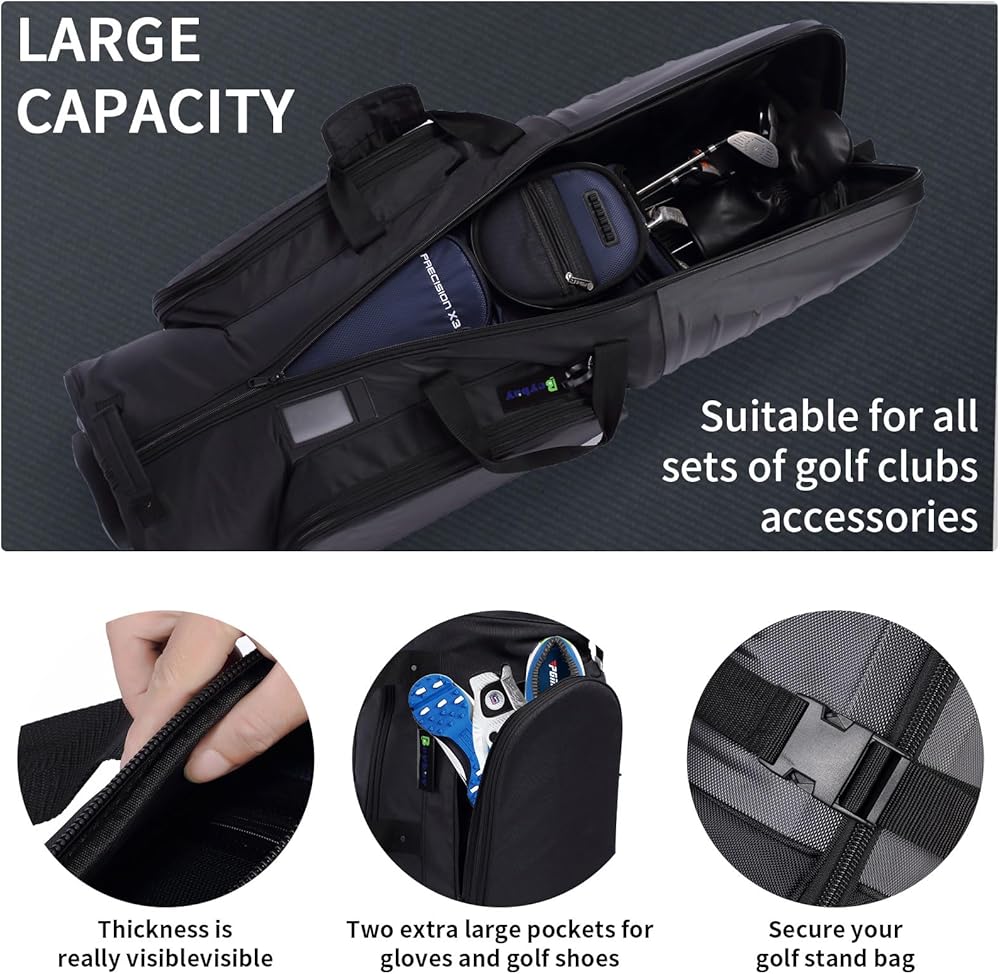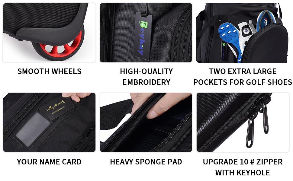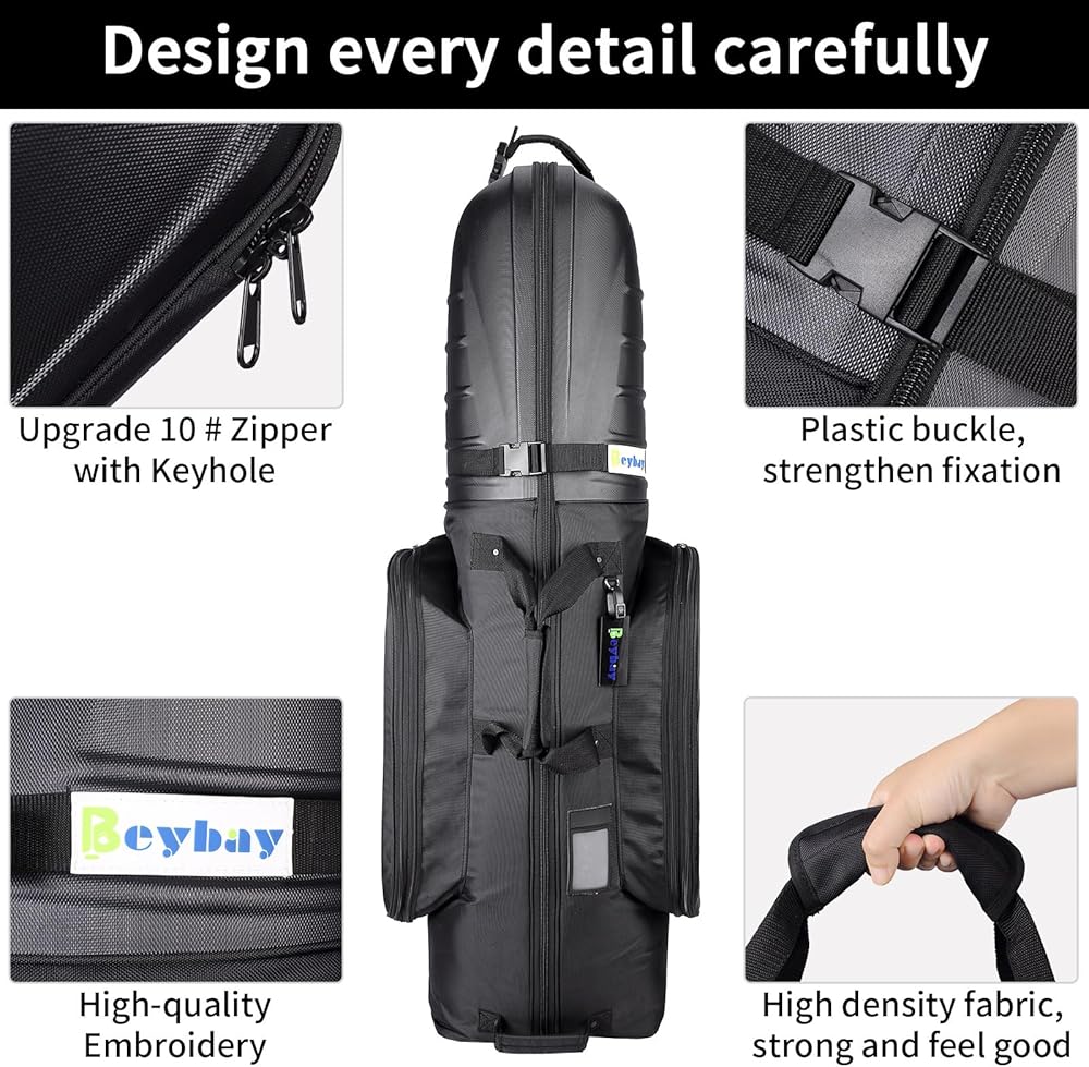حقائب سفر BEYBAY للجولف للخطوط الجوية ذات عجلات معززة وغطاء صلب، خفيفة الوزن وسهلة المناورة، سحاب ممتاز لحماية الأندية الخاصة بك