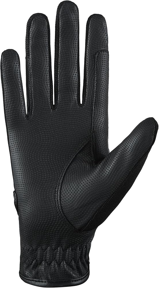 1 PAIR OF HIGH QUALITY SYNTHETIC LEATHER/COTTON HORSE RIDING GLOVES We are proud to present these high quality gloves which are made from synthetic leather at the palms for high sensitivity and grip and a cotton stretch back for maximum breathability and flexibility. Ideal for hard working hands! Reinforced stress points and a non-snag Velcro closure enhances durability. The articulated fingers provide a smooth fit with no bulk. * Lightweight and comfortable * Flexible stretch material * Durable Comfortable and Flexible Fastening: Hook and Loop Breathable 4-Way stretch Fabric Back/Synthetic Leather Palms High Tech Synthetic Leather Palms for a Great Grip. Flexible and durable 4-way material on back of hands for maximum comfort Quality is Guaranteed on these Ladies Womens Gloves.