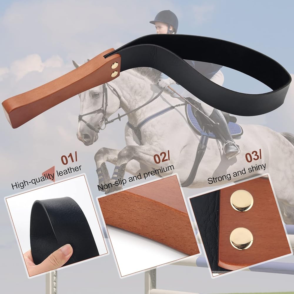محصول ركوب الخيل للخيول، محصول ركوب الفروسية مقاس 19 بوصة بمقبض خشبي مضاد للانزلاق (أسود)