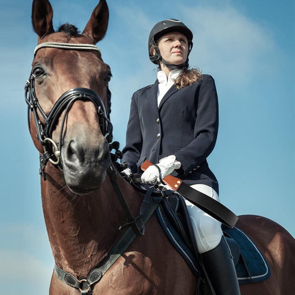 • [عملي]: السوط خفيف الوزن ولطيف ولكنه آمر، حتى يفهم الحصان التعليمات الواضحة. إنه أمر رائع للراكبين المبتدئين وجميع أنواع الخيول.
