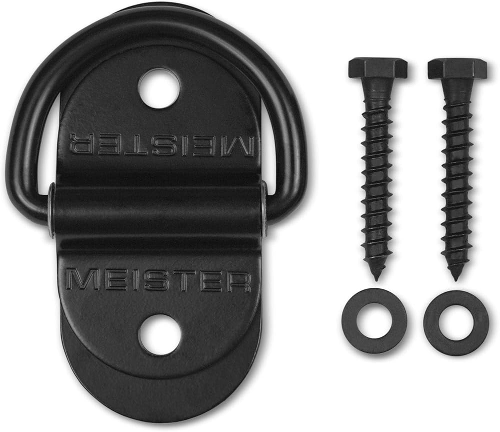 The Meister Double-End Heavy Bag D-Ring Floor Anchor features an exclusive double-plate design which lays flat when not in use and also prevents the D-ring from scratching your floor. Two black hex lag bolts and washers are included for easy installation. Ideal for both commercial gym and home use.
