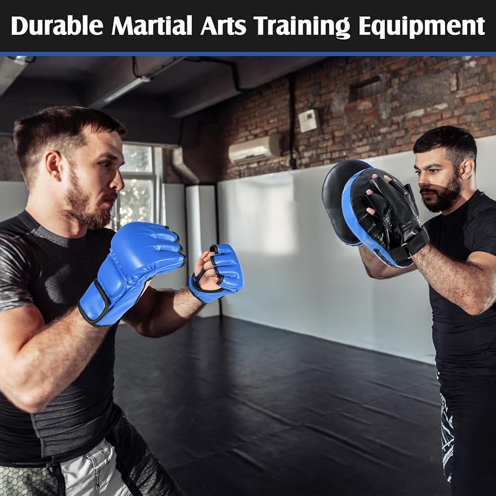 Lightweight and Comfortable Boxing Gloves: delivering optimal performance, the open boxing gloves included in our comprehensive kit provide a comfortable, lightweight design that reduces fatigue during extended training sessions; The gloves feature breathable palms, protective wrist straps, and a combination of shock absorbing materials to defend against kinetic energy impacts