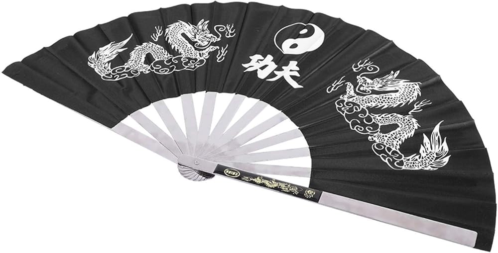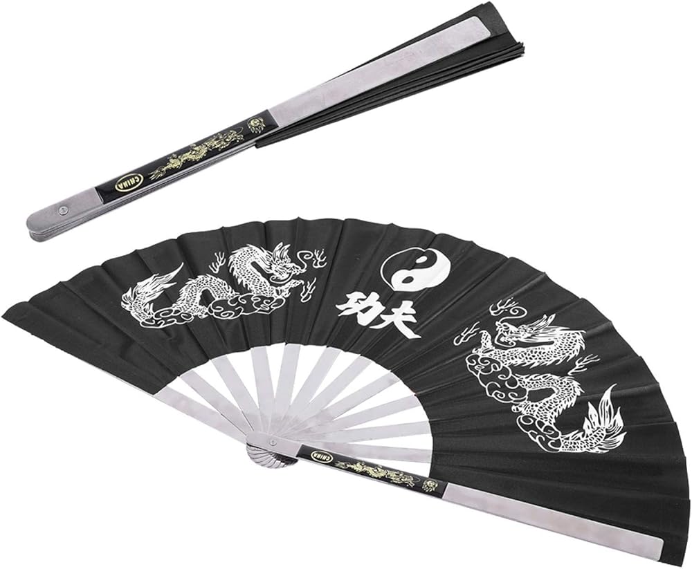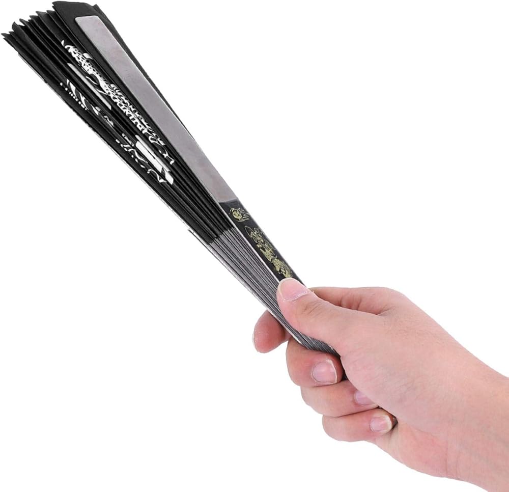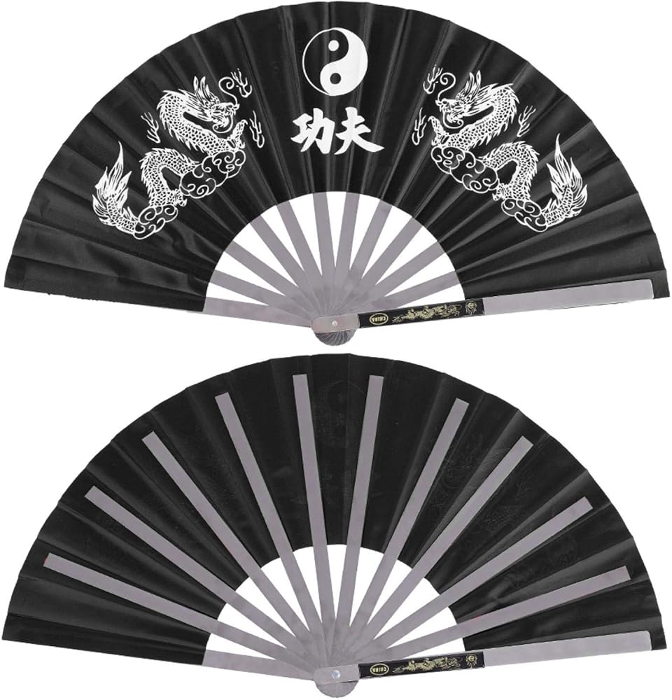 مروحة تاي تشي القتالية من الفولاذ المقاوم للصدأ، مروحة يد كبيرة قابلة للطي للفنون الكونغ فو وأداء التدريب على الرقص للرجال والنساء (أسود)