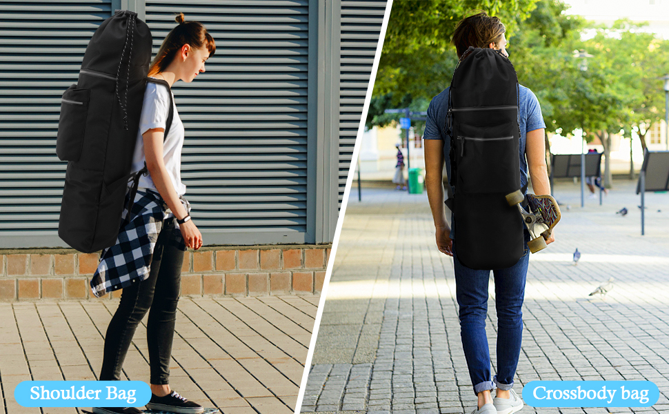 【مريحة ومحمولة】تم تصميم حافظة لوح التزلج بأشرطة كتف مزدوجة لتقليل ضغط الكتف. كما أنها مجهزة بحزام مقبض يمكن حمله على الكتف أو باليد، وهو مريح للغاية ومحمول. تصميم فتحة الرباط لحقيبة لوح التزلج يجعلها تتمتع بوظيفة التمدد السريع وتعديل الإغلاق. حقيبة تخزين لوح التزلج قابلة للطي ويمكن طيها بسهولة للتخزين عند عدم الاستخدام.