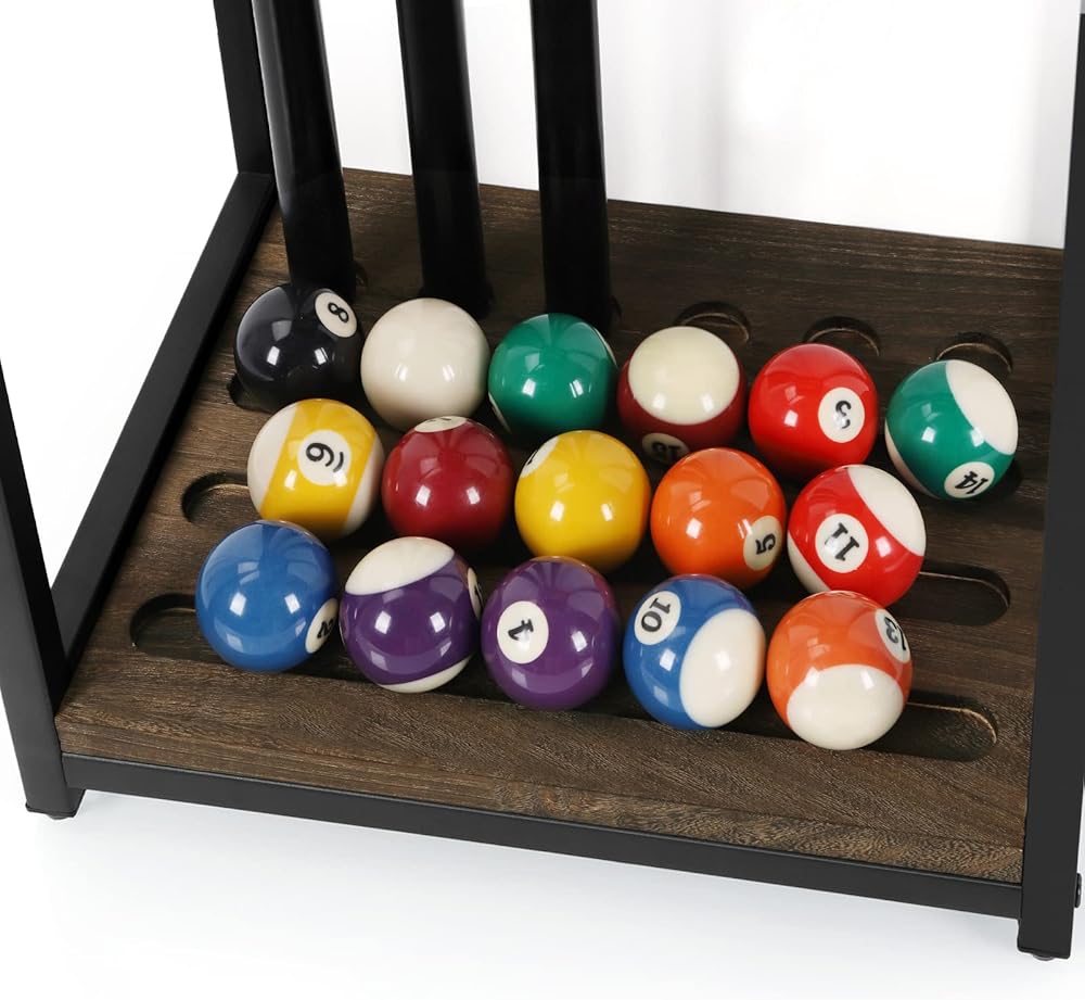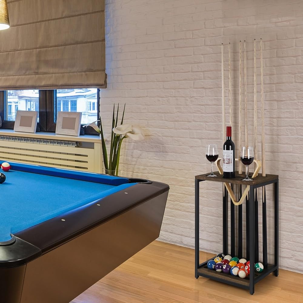 【حامل رف مثلث】بعد لعب البلياردو، يمكنك وضع الرف المثلث (9.8 × 1.8 بوصة) في الموقع الحصري لرف العصا، مما يجعل غرفة حمام السباحة تبدو أكثر مرتبة وتنظيمًا. يتوافق حامل عصا البلياردو هذا تمامًا مع طاولة البلياردو ويضيف إلى طابع غرفة الألعاب.