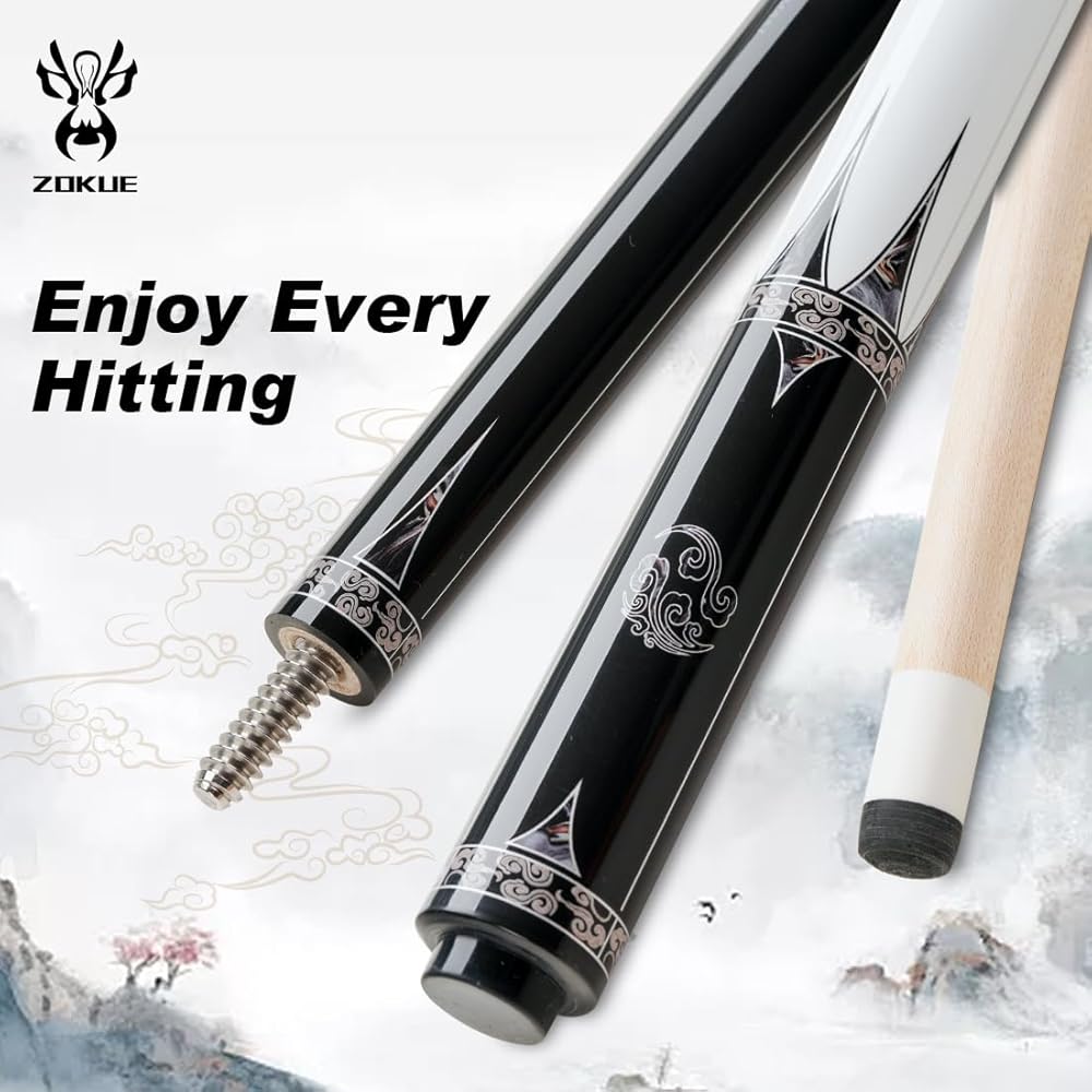 ZOKUE Pool Cue Maple Shaft Leather Grip 3/8*10 Joint XTC Ferrule 12.5mm Tiger Tip 58'' 1/2 Split Pool Cue Stick Billiards