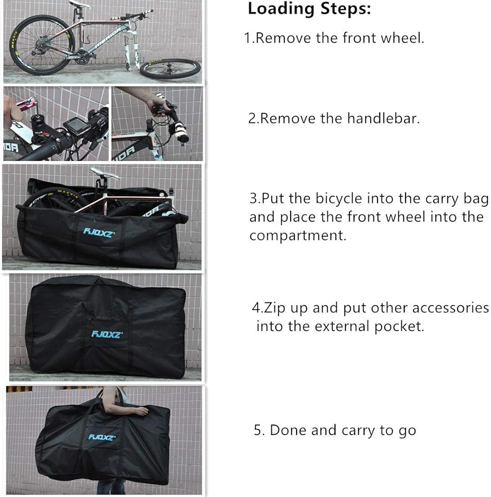 سهلة الحمل --- قم بفك العجلة الأمامية ومقود الدراجة، ثم ضع الدراجة بأكملها في حقيبة السفر الخاصة بالدراجة على الطريق واغلق السحاب.