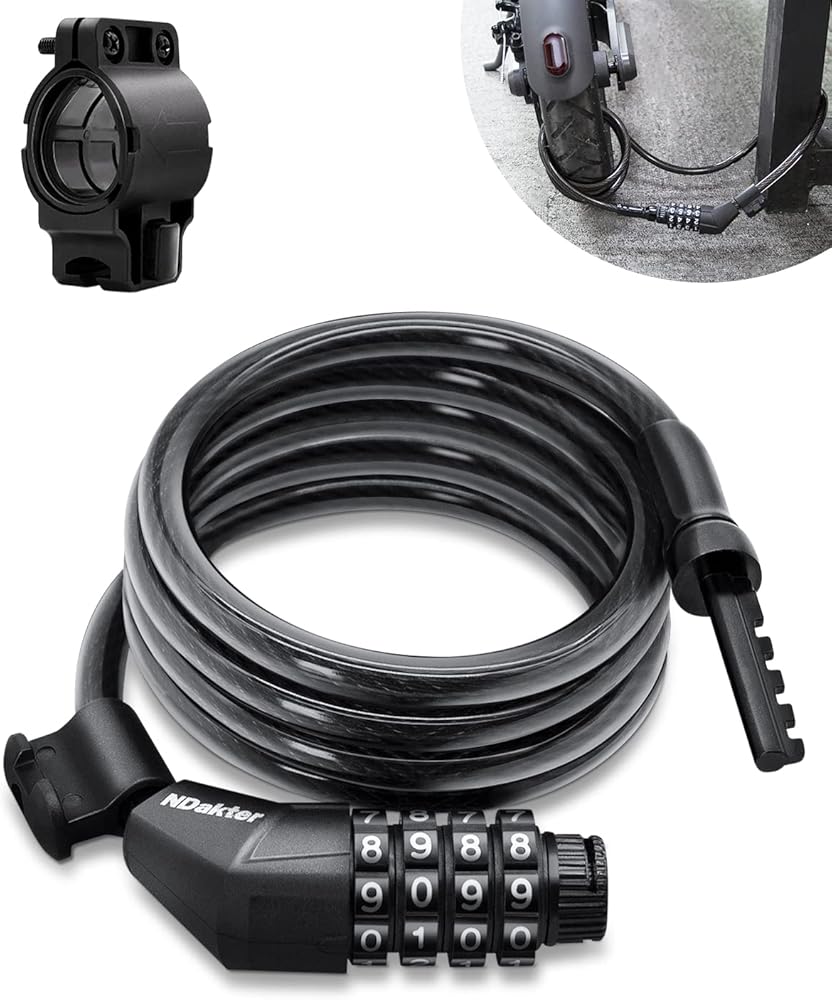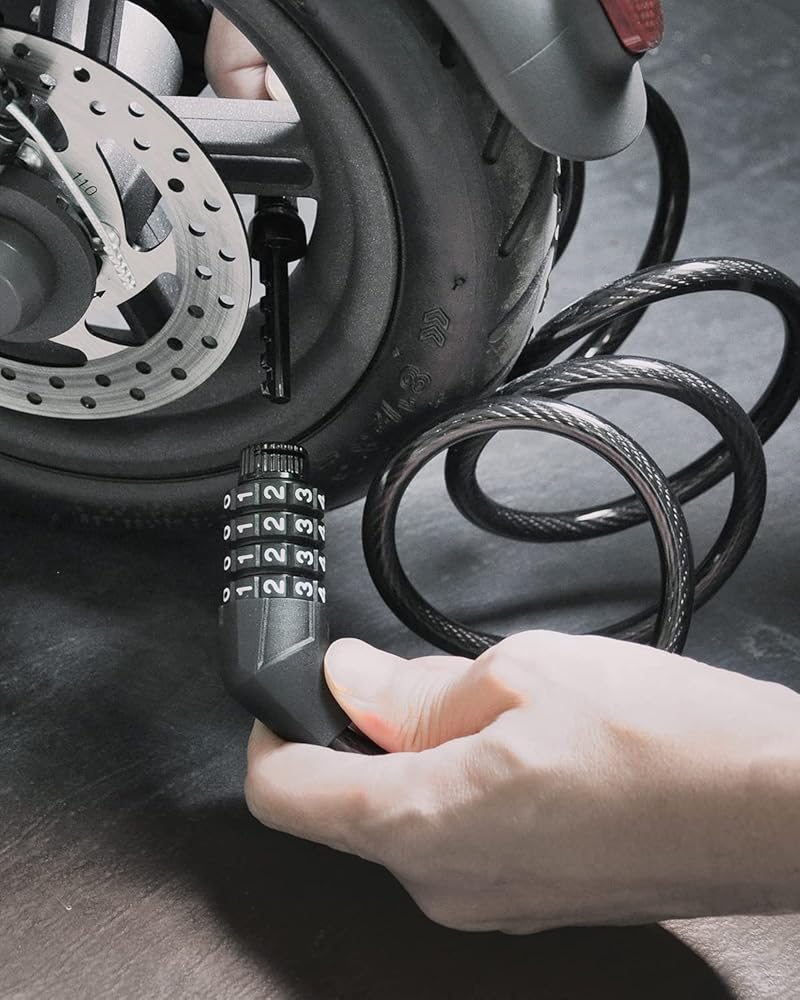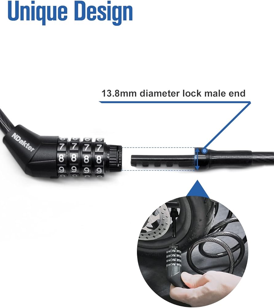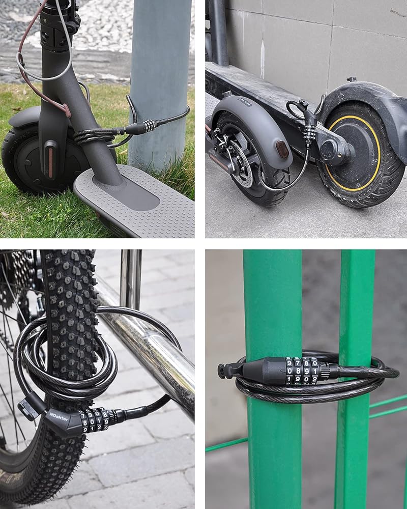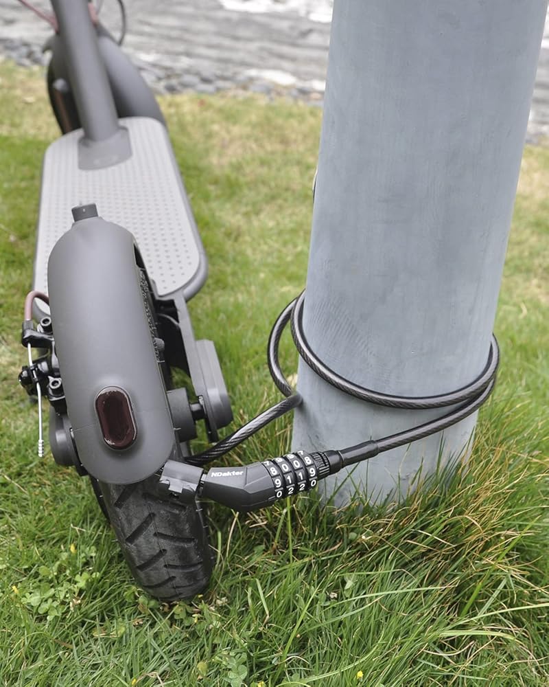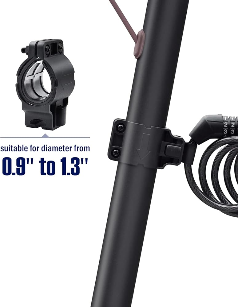 【متوافق مع جميع الدراجات البخارية】مع رأس قفل فريد وتصميم مزلاج، فإن الطرف الذكر للكابل هو نفس قطر الكابل نفسه ويمكن أن يمر عبر فجوة المتحدث في السكوتر. ينطبق هذا على جميع أنواع الدراجات البخارية تقريبًا، مثل السكوتر الكهربائي Xiaomi Mijia M365 ES Series Segway Ninebot. يمكن أيضًا استخدام قفل الكابل للدراجة وألواح التزلج والشوايات والسلالم والأبواب وجزازات العشب والمعدات الرياضية.