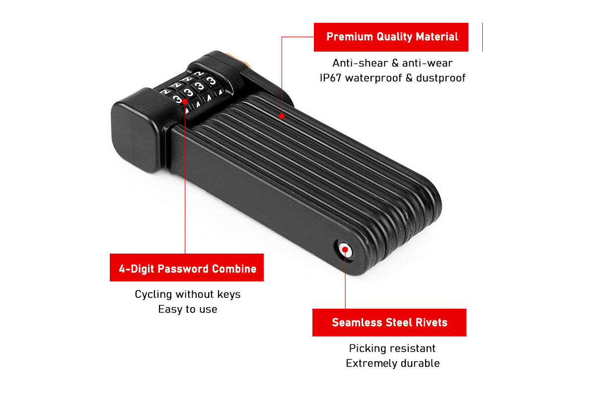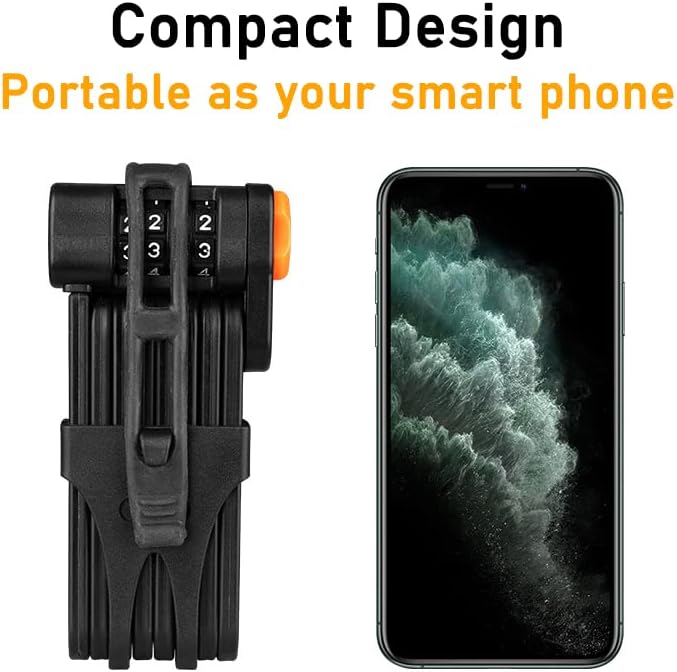 • تصميم مضغوط - 8 قضبان قابلة للطي تقلل حجم القفل بشكل كبير، مما يجعله بحجم الهاتف المحمول تقريبًا. مريحة للغاية للحمل.