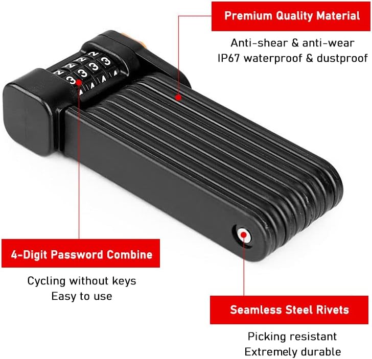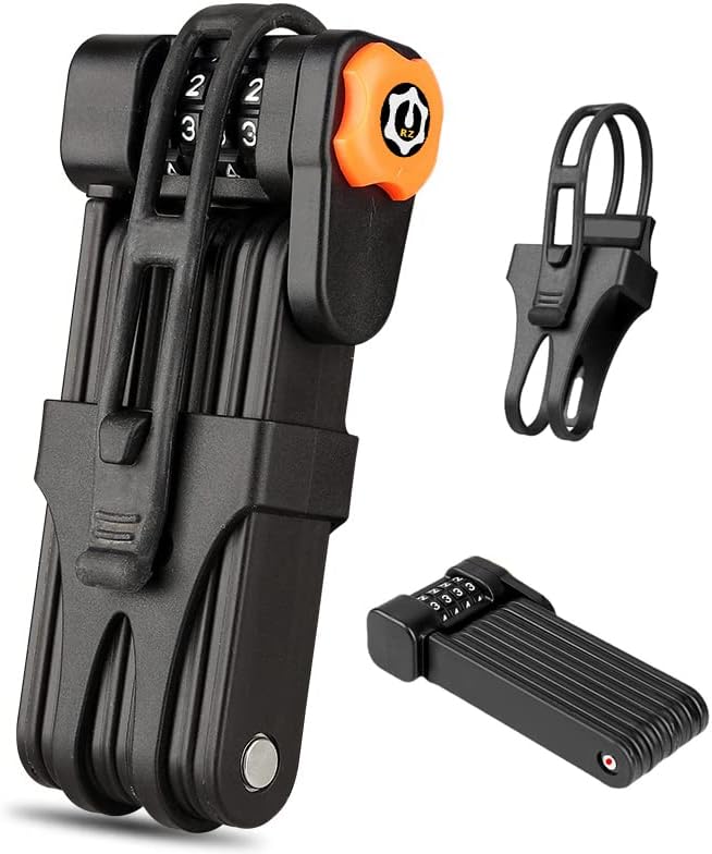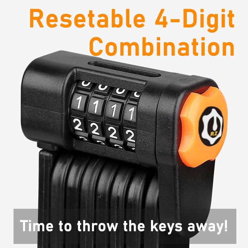 قفل دراجة قابل للطي من ROZZWILD مكون من 4 أرقام مضاد للسرقة وشديد التحمل من سبائك الصلب وطبقة مضادة للخدش ومقاومة للماء ومضادة للصدأ وقفل سلسلة قابل للطي للدراجات الهوائية والسكوتر مع دعامة تثبيت