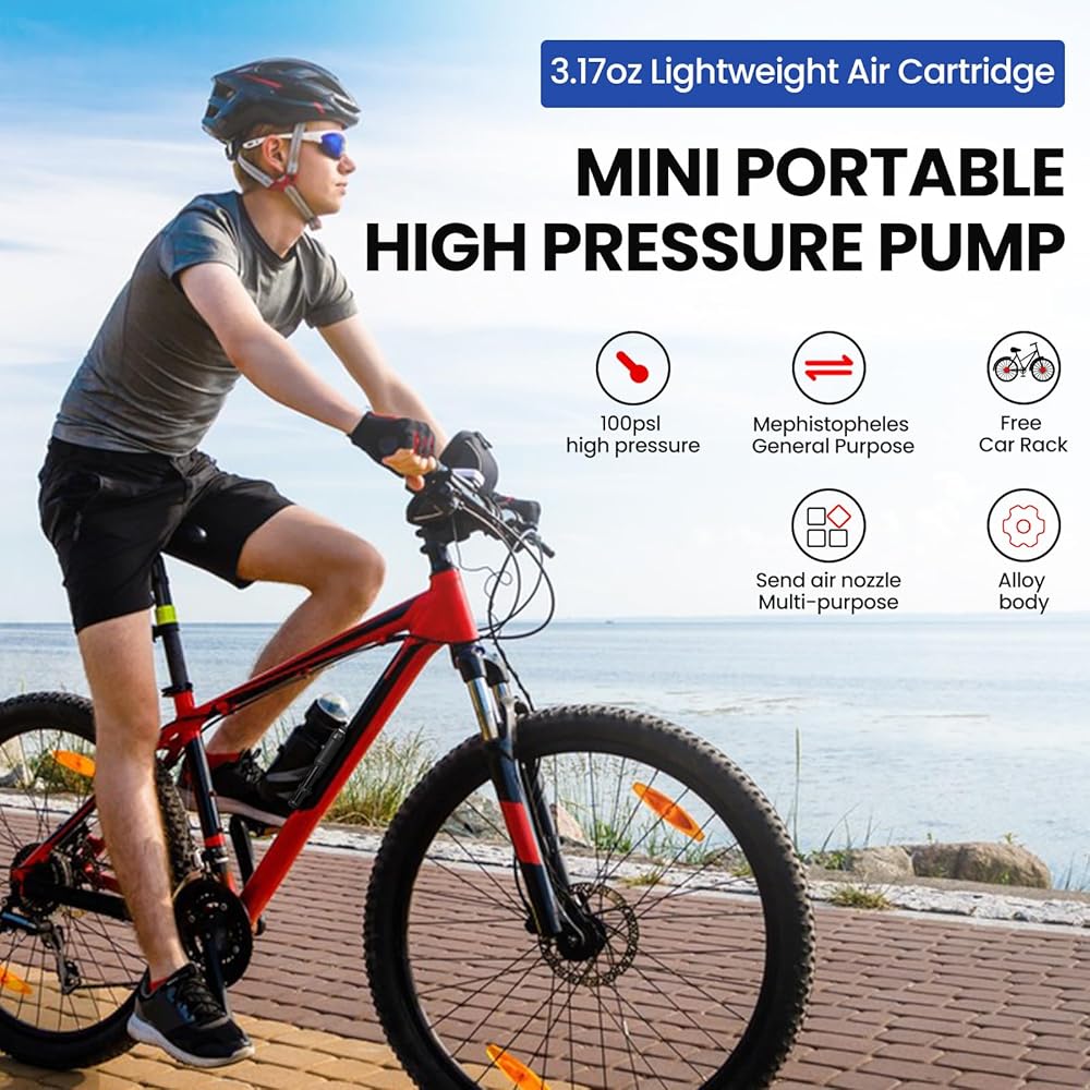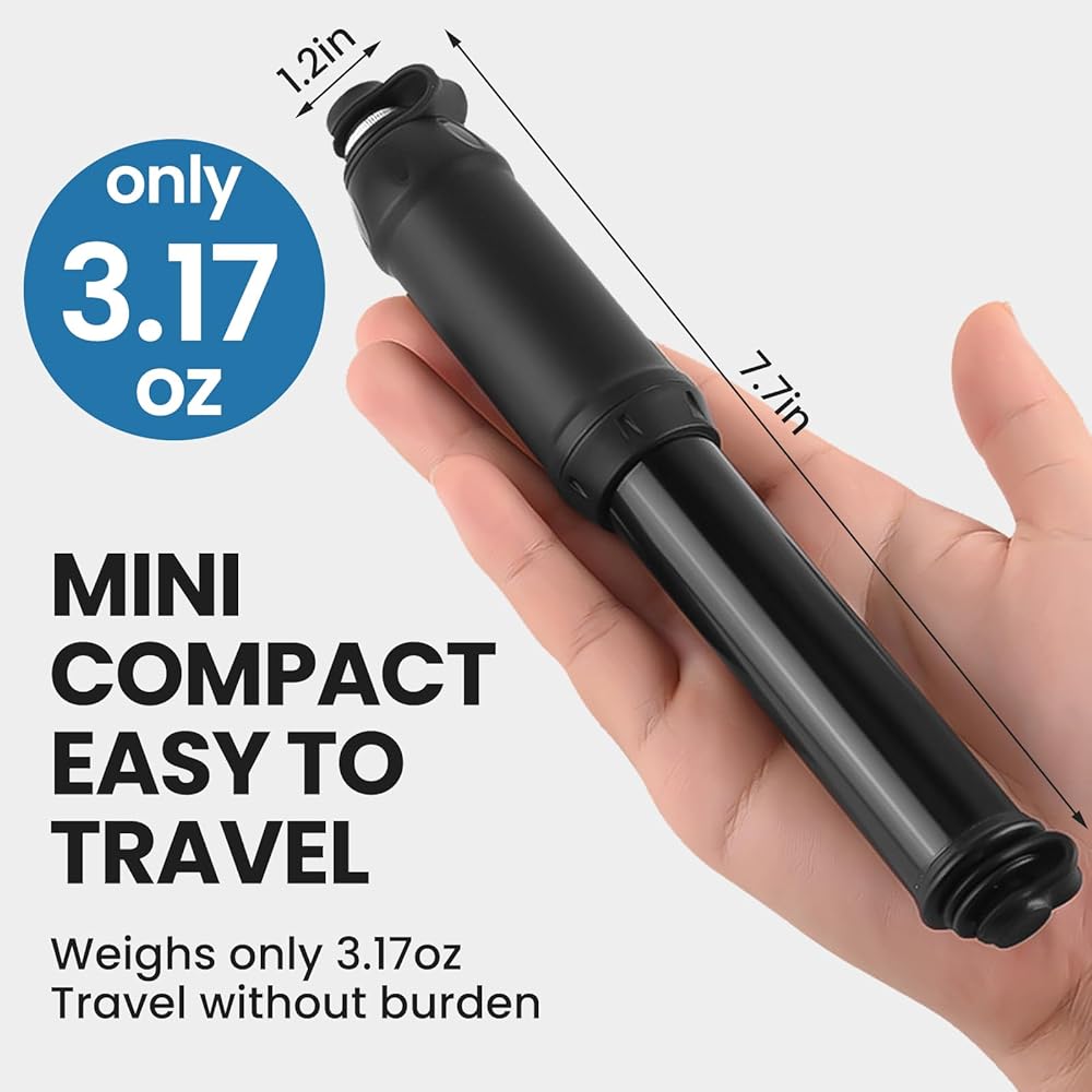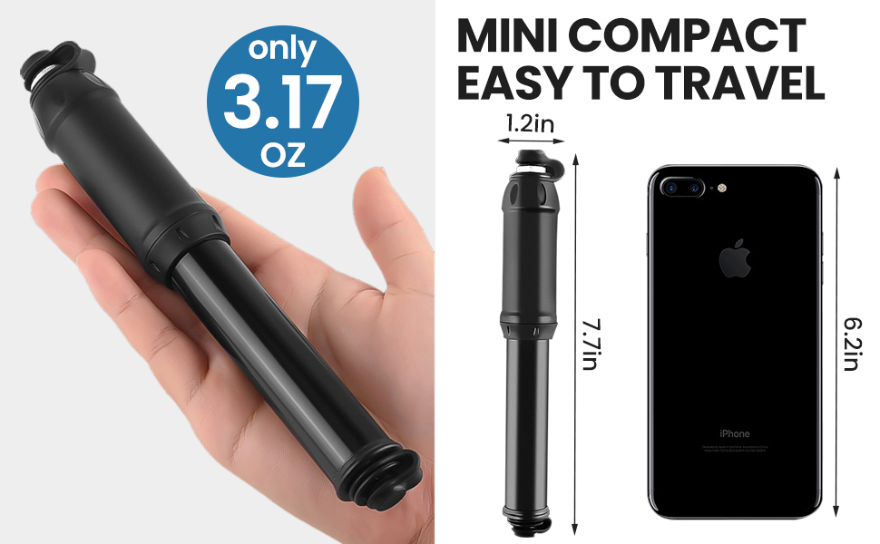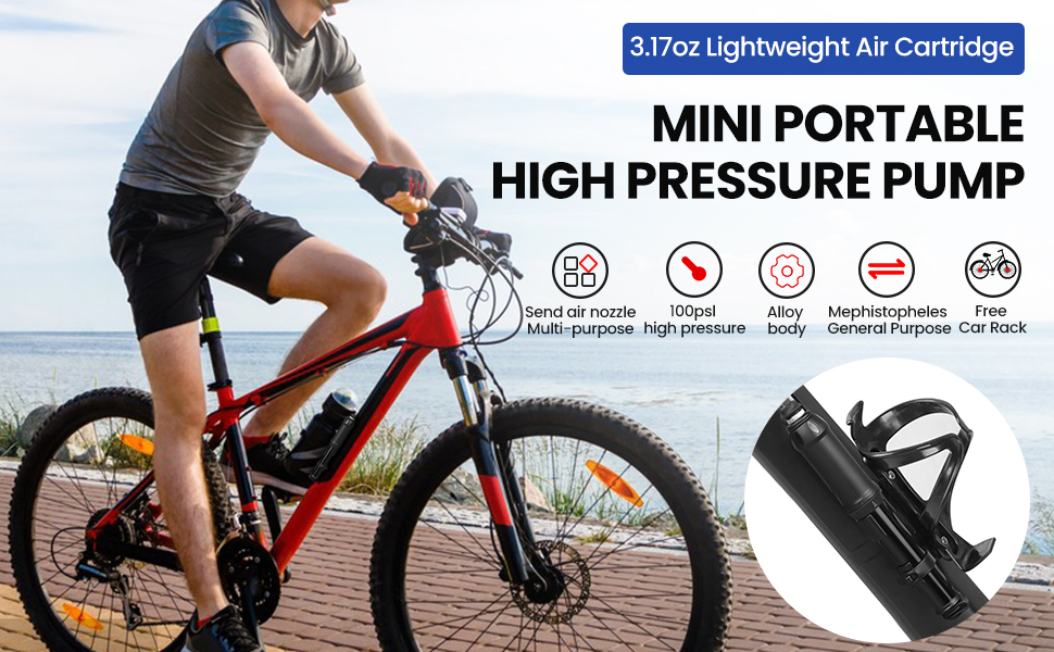 مريحة ومحمولة: تزن المضخة الصغيرة المحمولة 3.1 أونصة فقط (7.6 بوصة)، ويتم تثبيتها تحت رف الدراجة أو قفص زجاجة المياه بواسطة دعامة التثبيت، بدون خشخشة أو فقدان المضخة، ولا يوجد وزن إضافي على طريق الركوب.