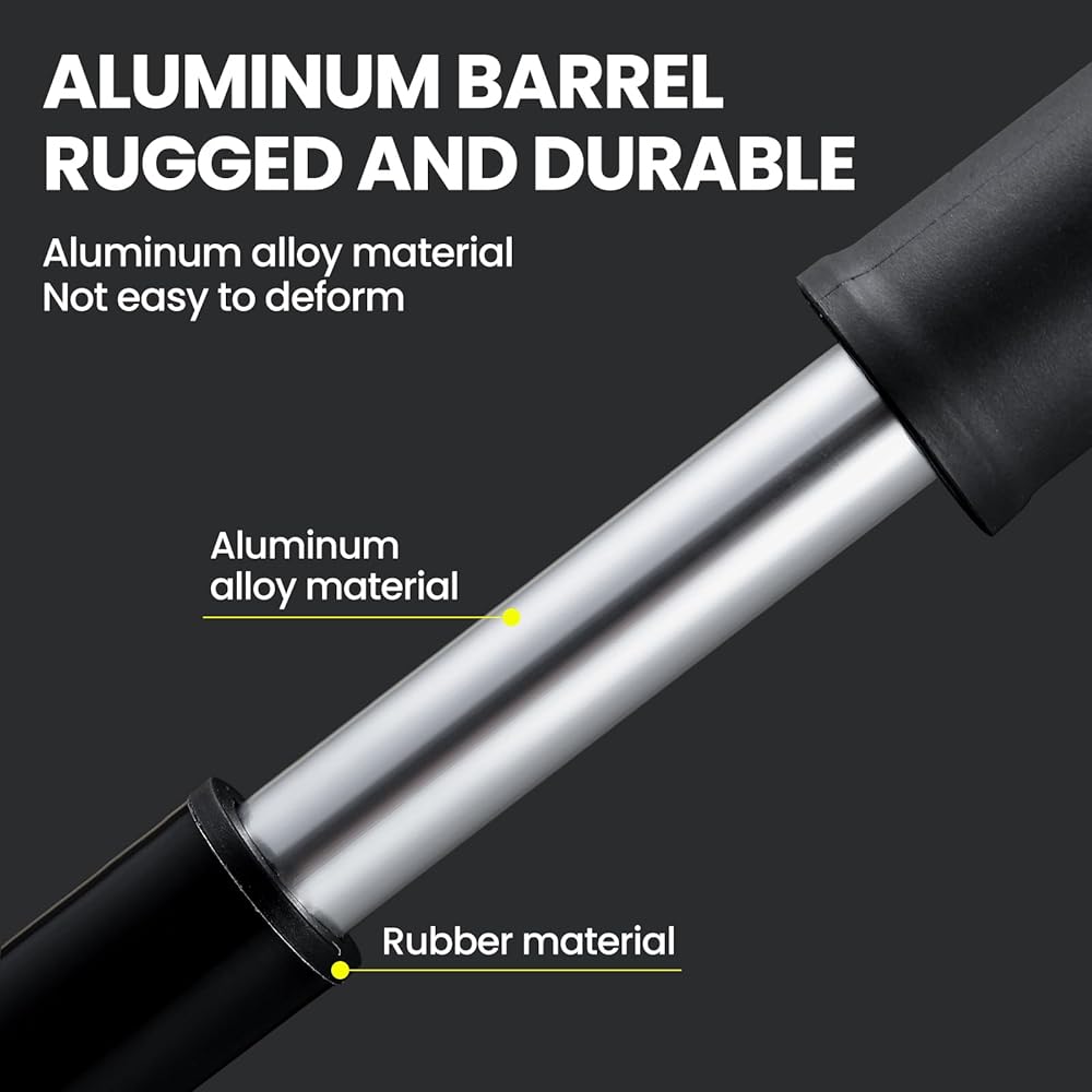 مادة متينة: الجسم الرئيسي للمضخة مصنوع من سبائك الألومنيوم عالية الجودة، والأجزاء دقيقة ومتينة، مع مقاومة عالية للتآكل والتآكل. أنبوب الهواء المقاوم للحرارة والمضاد للتجمد مصنوع من مواد مضادة للتجمد، ومقاوم للحرارة، ومقاوم للبرد، ومقاوم للتآكل. تتيح لك إجراء فحص بدني ممتع وآمن للركوب.