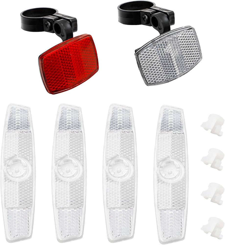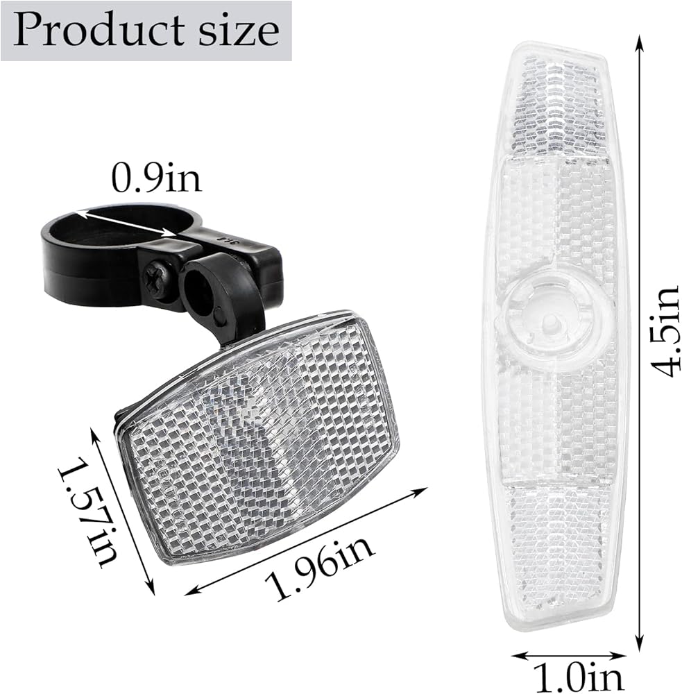 • Package: You will receive a package includes 2pcs of front reflectors in red and white, 4pcs of bicycle wheel spoke reflectors, which feeds your need.