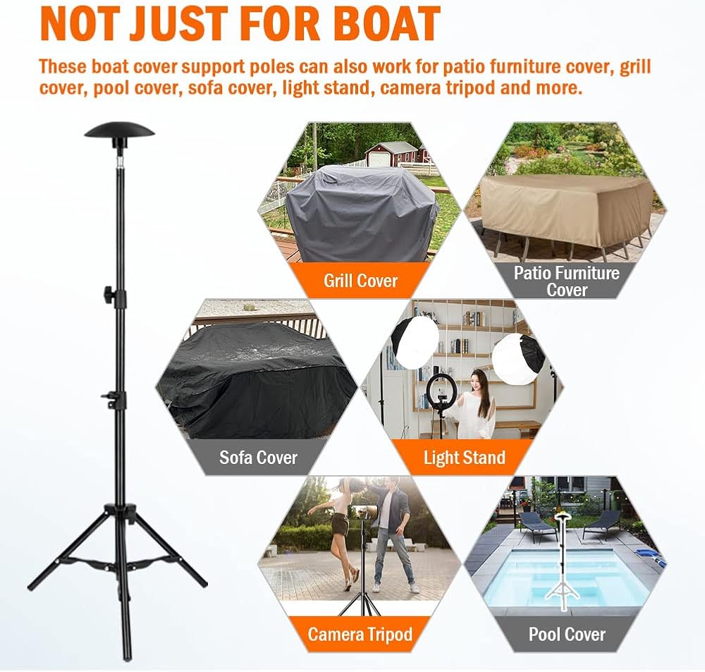 ارتفاع قابل للتعديل - يتميز عمود دعم غطاء القارب هذا بعمود تلسكوبي قابل للتعديل من 21 بوصة إلى 50 بوصة. فهو يزيل جميع المناطق التي يمكن أن تتدلى وتجمع الماء، وتمنع الماء من التجمع والبرك والجيب. يناسب هذا العمود جميع أنواع القوارب مثل قارب جون وقارب البيس وقارب الصيد وقوارب الكاياك والبونتون وقارب وحدة التحكم المركزية ويساعد على إطالة عمر قاربك.