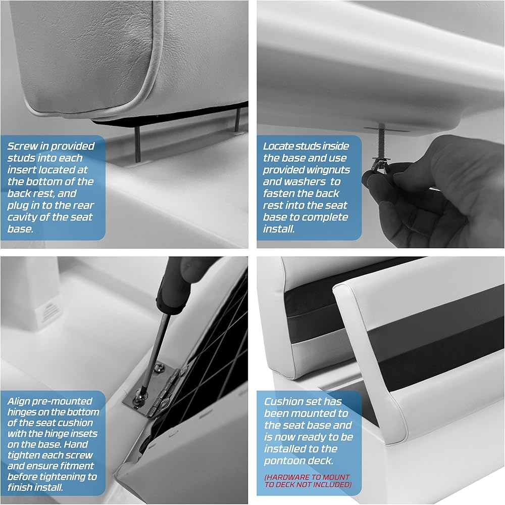 37" Deluxe Series Pontoon Bench Seat Cushion Set Only- Order #8WD100-1B-204 Deluxe Series Pontoon Seat Base to Complete Set