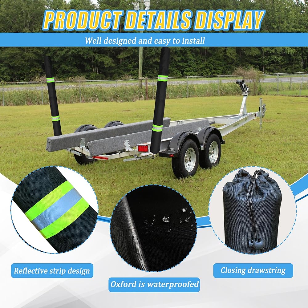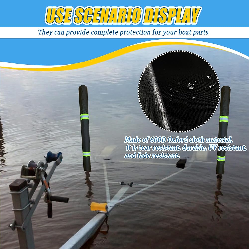 - Heavy Duty Boat Trailer Guide Pole Cover comes with a lid and a drawstring for easy sliding into place, and can be installed in just a few seconds.