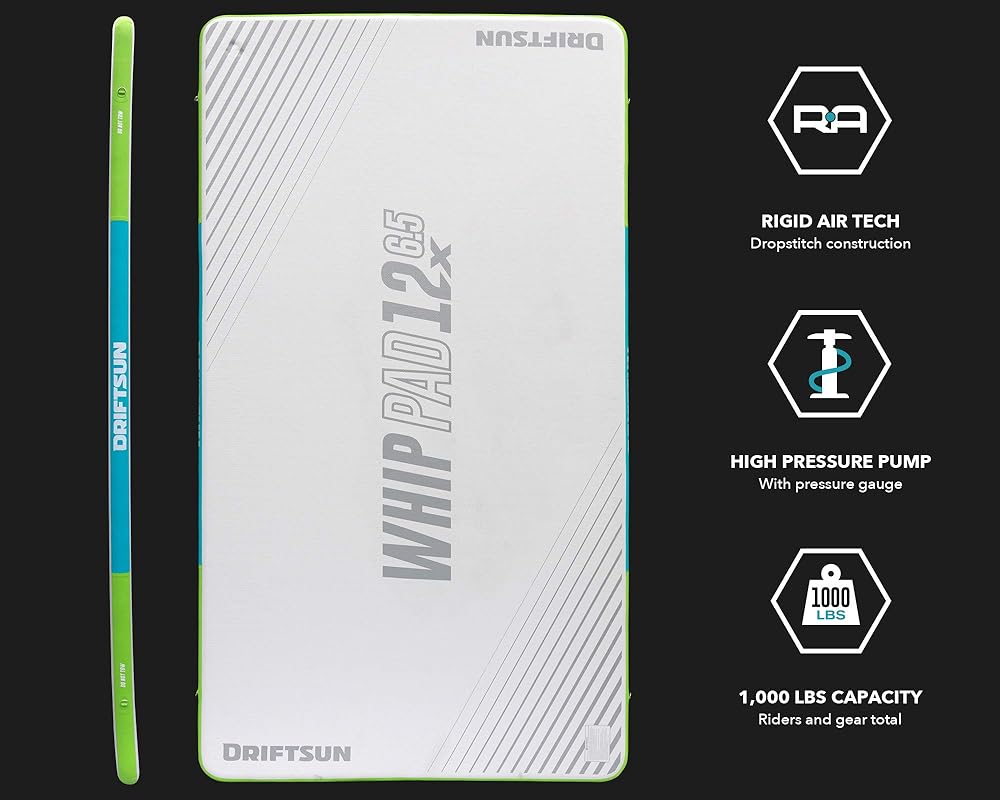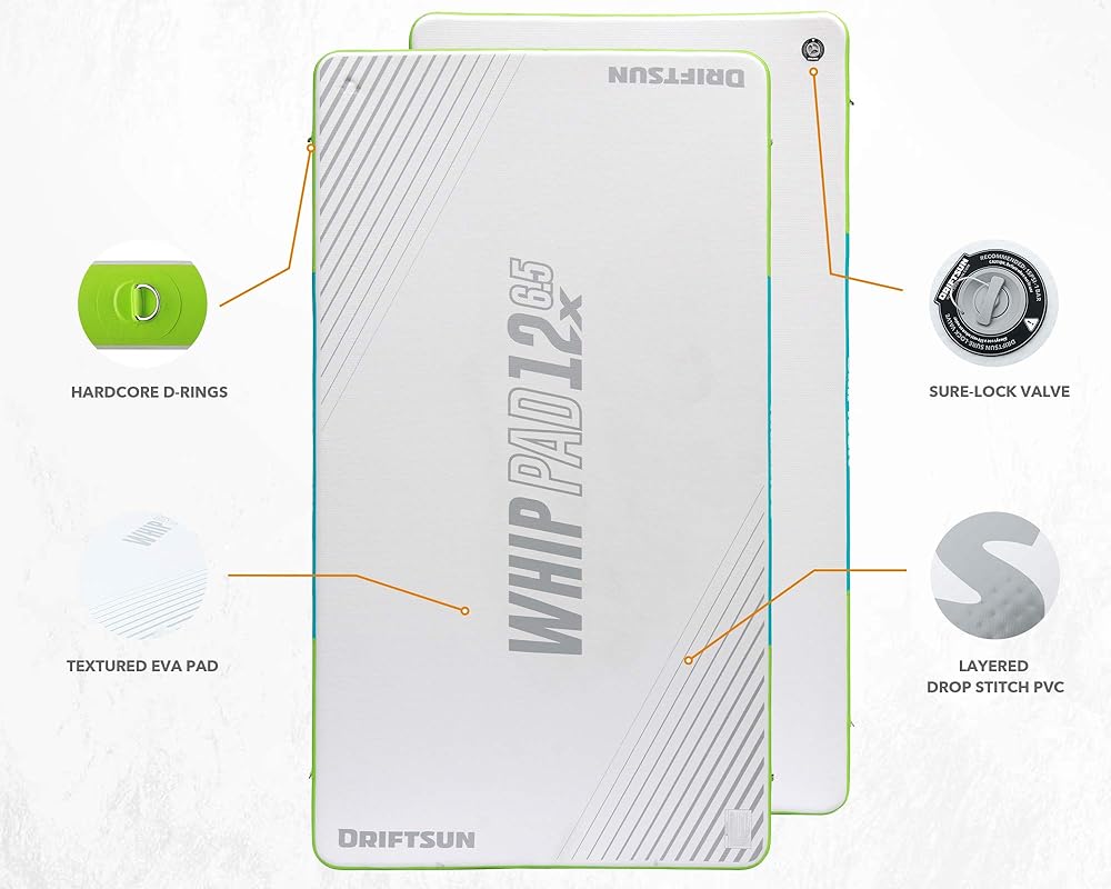 This pad is a must for water enthusiasts of all kinds! Use it as a platform to clean and work on your boat on the water. Practice yoga on the lake or lay out and catch a tan. Bring out the lounge chairs, coolers and watch the sunset from the water. Kids love to jump and play on this whip pad. With so many uses the Driftsun Whip Pad is sure to be used all summer long. Constructed from military-grade PVC using MLS drop stitch technology. Never worry about the fun ending from dings, damage or punctures with this extremely durable inflatable swim platform.