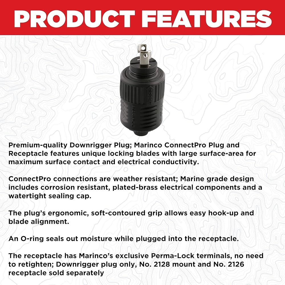 ConnectPro connections are weather resistant. The marine-grade design includes corrosion resistant, plated-brass electrical components, and a watertight sealing cap. The plugs erogonomic, soft-contoured grip allows easy hook-up and blade alignment. An O-ring seals out moisture while plugged into the receptacle.