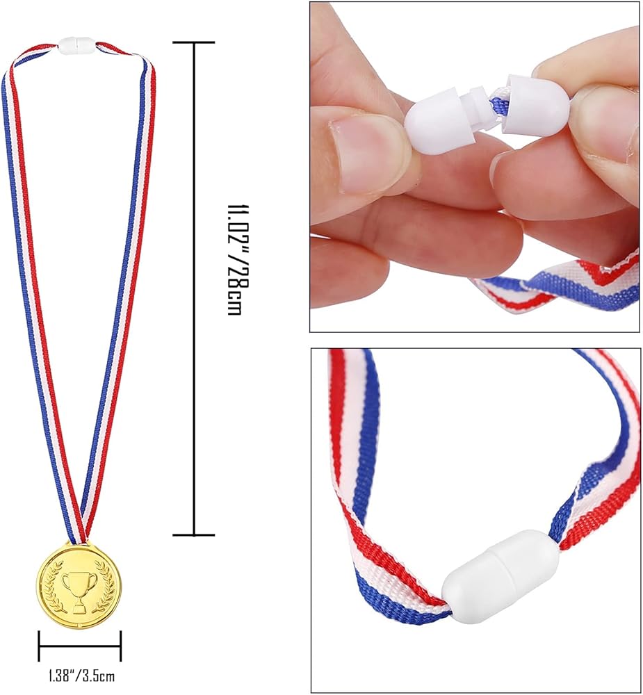 - المقاس: قطر الميدالية الذهبية حوالي 3.5 سم، وطول الشريط حوالي 28 سم، مناسب لمعظم الأطفال