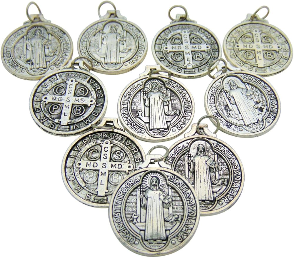 مجموعة من 10 ميداليات St Benedict مجموعة كبيرة من قلادة القديس المعدنية مقاس 7/8 بوصة