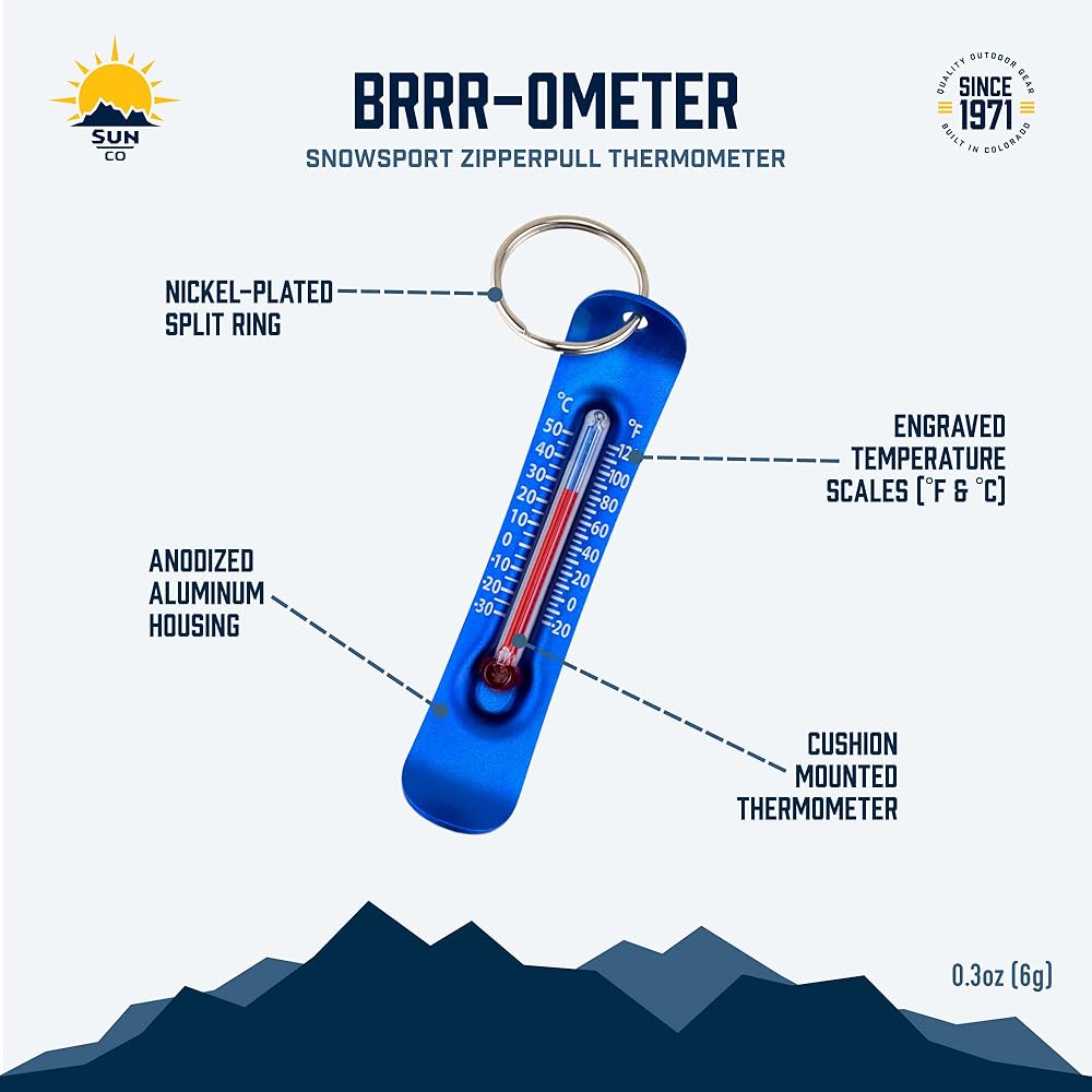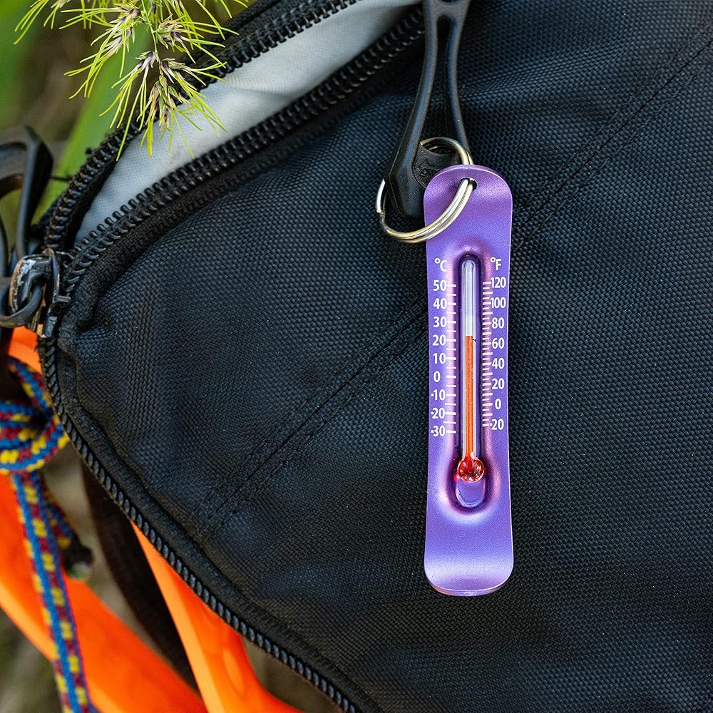 حلقة مفاتيح يدوية - قم بتركيبها على معطفك أو حقيبتك أو سحابك أو أي شيء آخر يخطر ببالك. يعد Brrr-ometer الإضافة المثالية لمعدات التخييم والمشي لمسافات طويلة والبقاء على قيد الحياة والسفر.