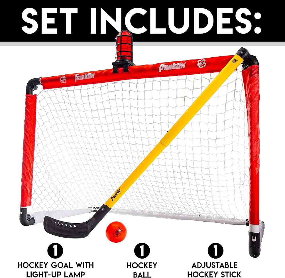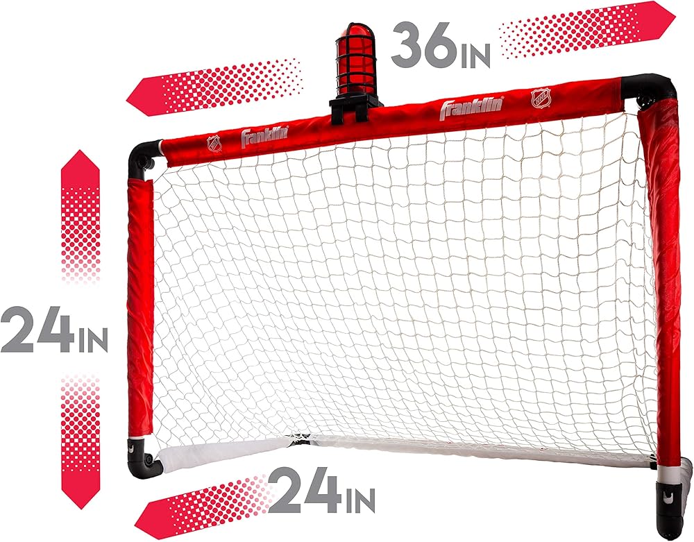 Bring the thrill of hockey games home with Franklin Sports' NHL Mini Hockey Goal Sets! Exciting and challenging, knee hockey is a great way to teach first-timers the basics of hockey and is ideal for young children. Plus with 24 NHL teams to choose from, these sets are a great way to show your team spirit and help kids feel like pros! With a little imagination, suddenly they're the star player of their favorite team, aiming for the goal with passion and precision! This set includes 2 mini hockey sticks, a mini foam hockey ball, and a mini goal so you have everything you need to get started. Add to the fun by buying a second set, and the team challenge is on! Rainy day? No problem! Although you might have a clear “no running in the house” rule, you can play knee hockey anywhere at home. So find your favorite team and practice your shooting and goalie skills with this fun mini hockey set!