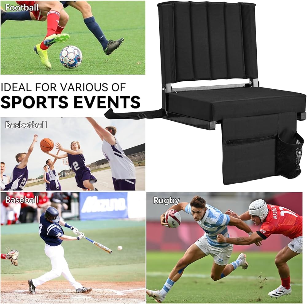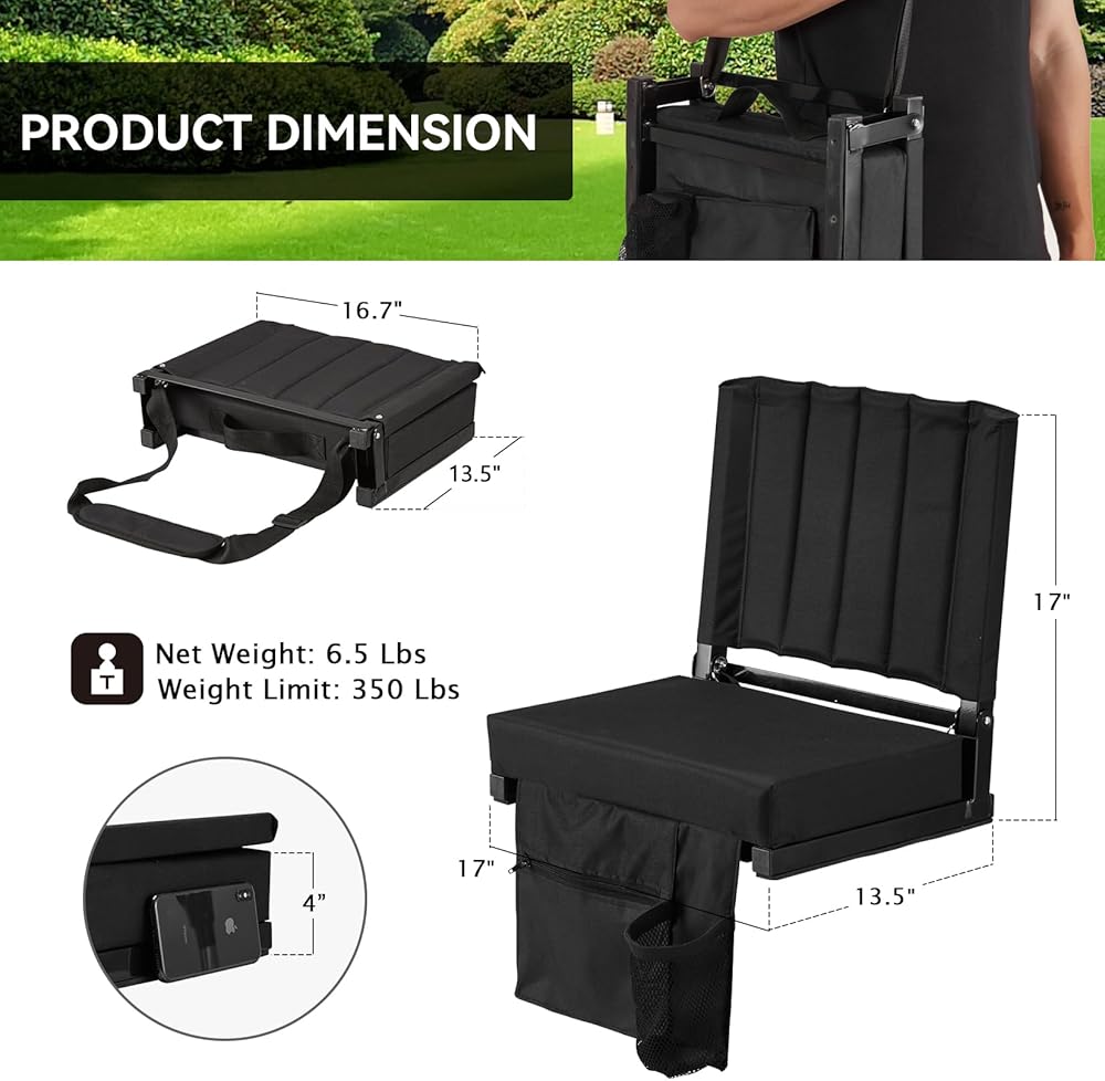 【متعدد الاستخدام】: حجم المقعد: 17 بوصة عرض × 13.5 بوصة طول × 17 بوصة ارتفاع. الوزن: 6.5 رطل. الحد الأقصى لوزن الدعم: 350 رطلاً. يعد مقعد الاستاد هذا مثاليًا لأي مناسبة خارجية أو حدائق أو نزهات أو تخييم وما إلى ذلك. يمكنك اصطحاب المقعد إلى أي مكان تريده ويمكن أن يساعدك على تقليل آلام الجلوس لفترة طويلة على المدرجات الصلبة.