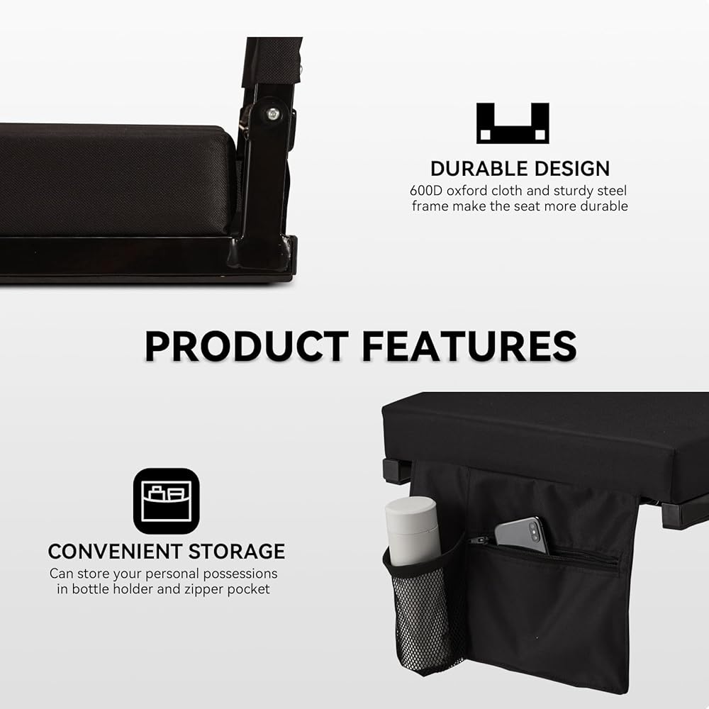 【قابل للطي والحمل】تم تصميم مقعد الاستاد بحزام كتف مبطن ومقبض حمل مريح يسهل طيه وحمله. وفقًا لتفضيلاتك، يمكنك حملها بمقبض حمل مريح أو حزام كتف مبطن. بالإضافة إلى ذلك، فإن طول حزام الكتف قابل للتعديل، ويمكنك تعديله حسب حاجتك.