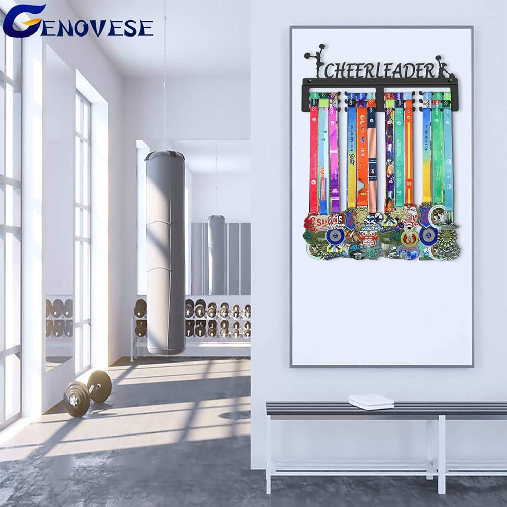 إطار حامل ميدالية Cheerleader، إطار حامل شماعات، معدن فولاذي قوي أسود، مثبت على الحائط أكثر من 50 ميدالية