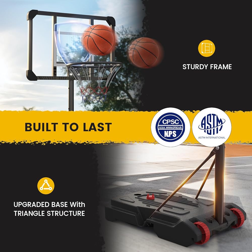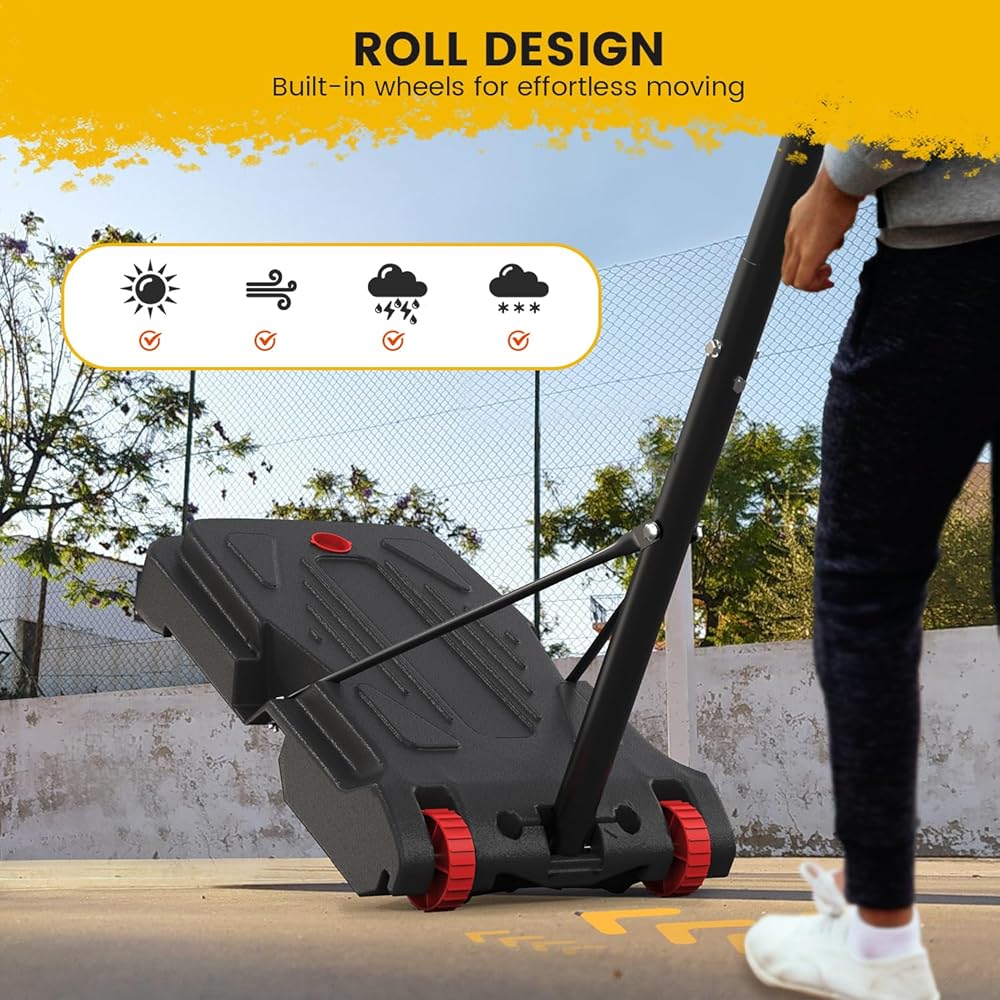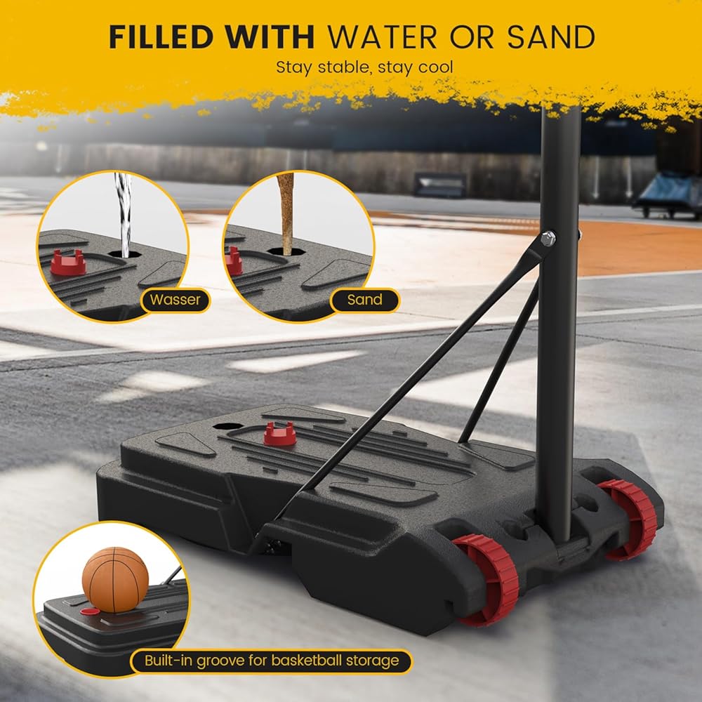 🏀 [مصمم لتحدي العناصر] تم تصميم هدف كرة السلة المحمول الخاص بنا بقاعدة مرنة مصممة لتحمل جميع الظروف الجوية. املأ القاعدة بالماء أو الرمل لتعزيز الثبات والسلامة أثناء كل لعبة. يتميز نظام المرمى بهيكل مثلث واتصالات آمنة، مما يوفر قوة وموثوقية إضافية.