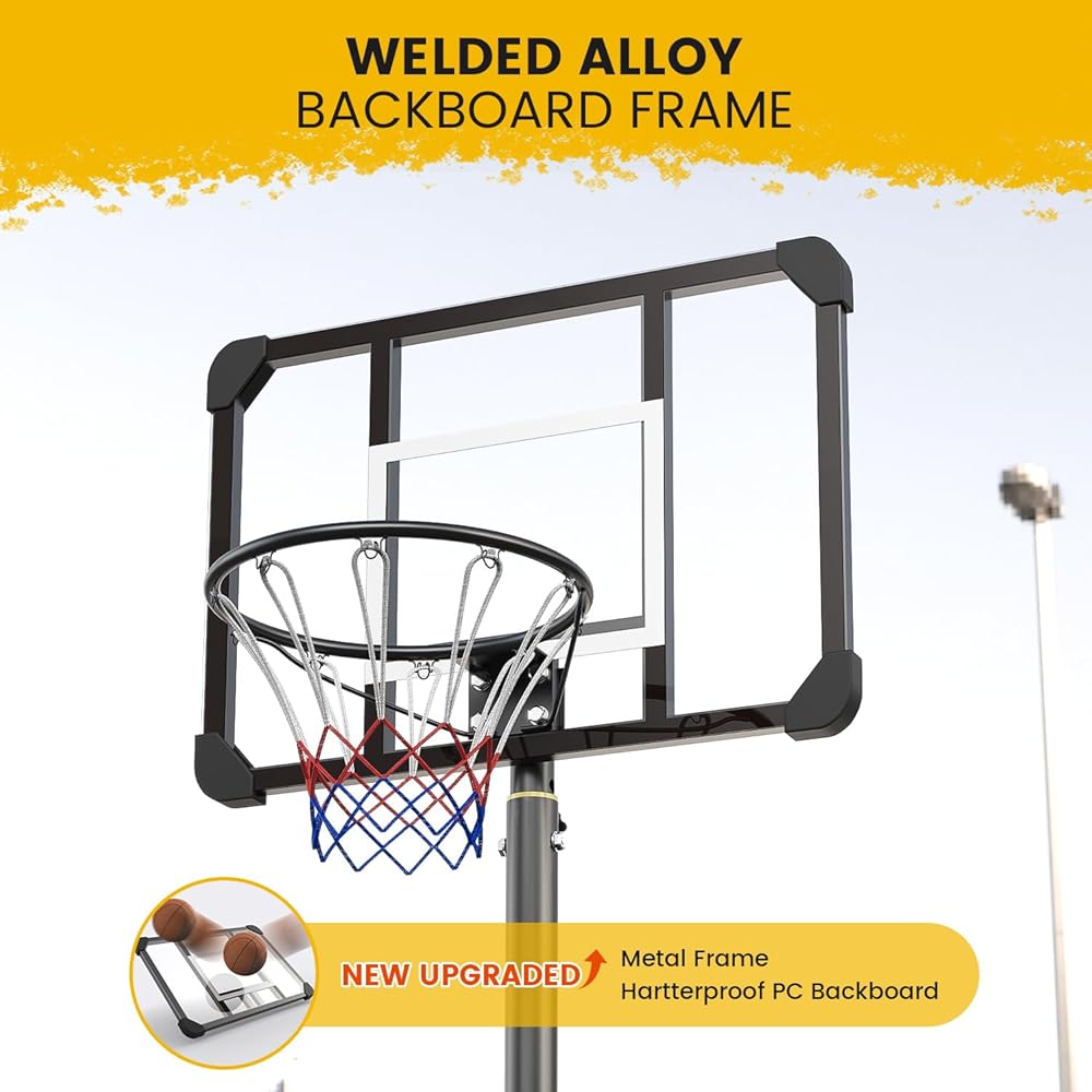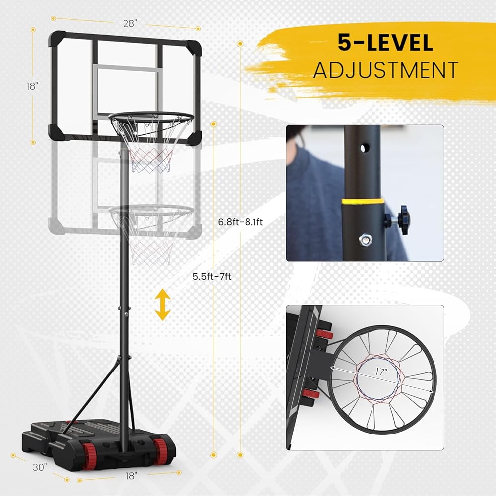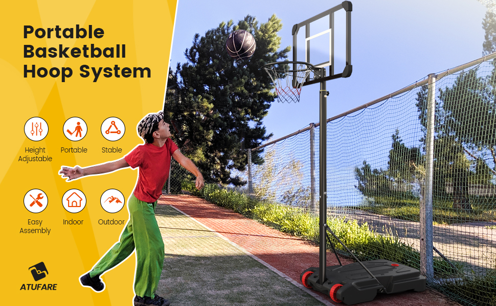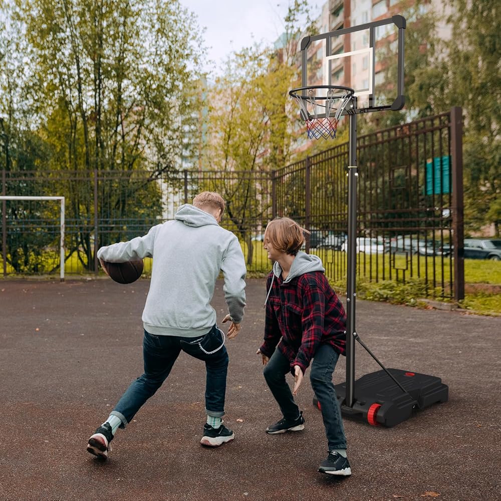 🏀 [مصمم لتحدي العناصر] تم تصميم هدف كرة السلة المحمول الخاص بنا بقاعدة مرنة مصممة لتحمل جميع الظروف الجوية. املأ القاعدة بالماء أو الرمل لتعزيز الثبات والسلامة أثناء كل لعبة. يتميز نظام المرمى بهيكل مثلث واتصالات آمنة، مما يوفر قوة وموثوقية إضافية.