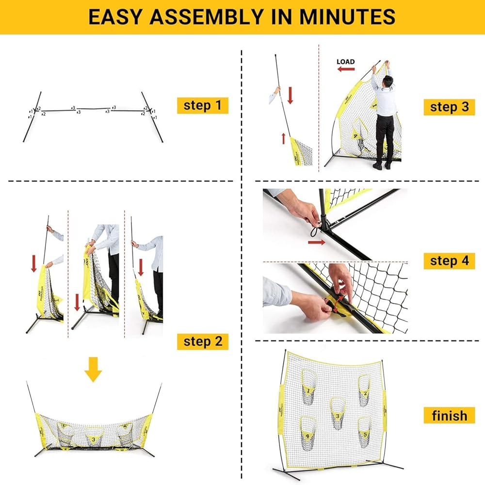 LARGE RECEIVING AREA - Features 8' X 8' large size net with 5 target pockets to receive balls from all directions and distances.